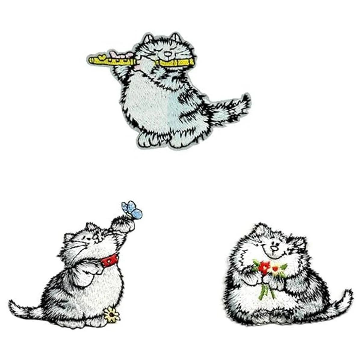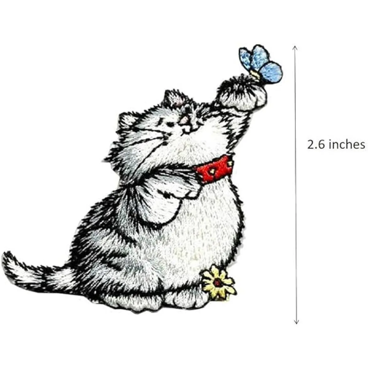 Parche bordado con mariposas Kawaii, diseño de gatos jugando con la insignia de animales