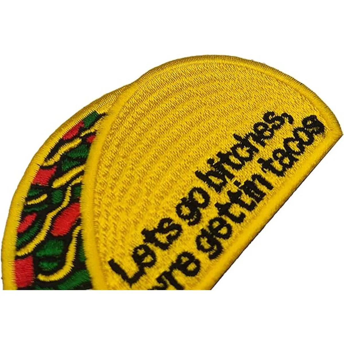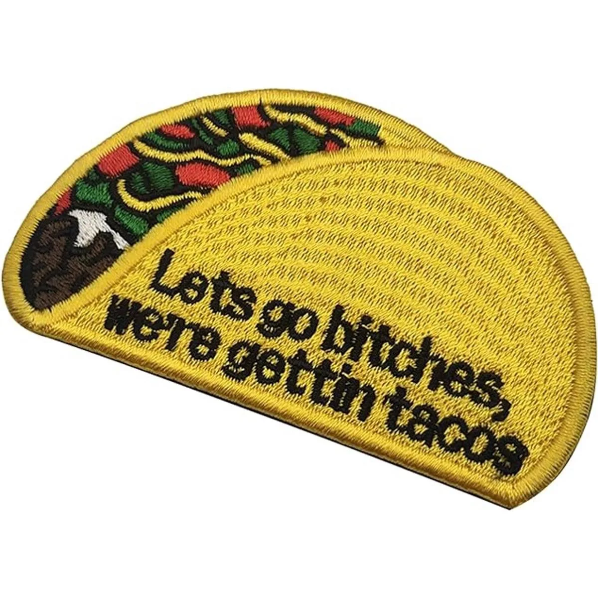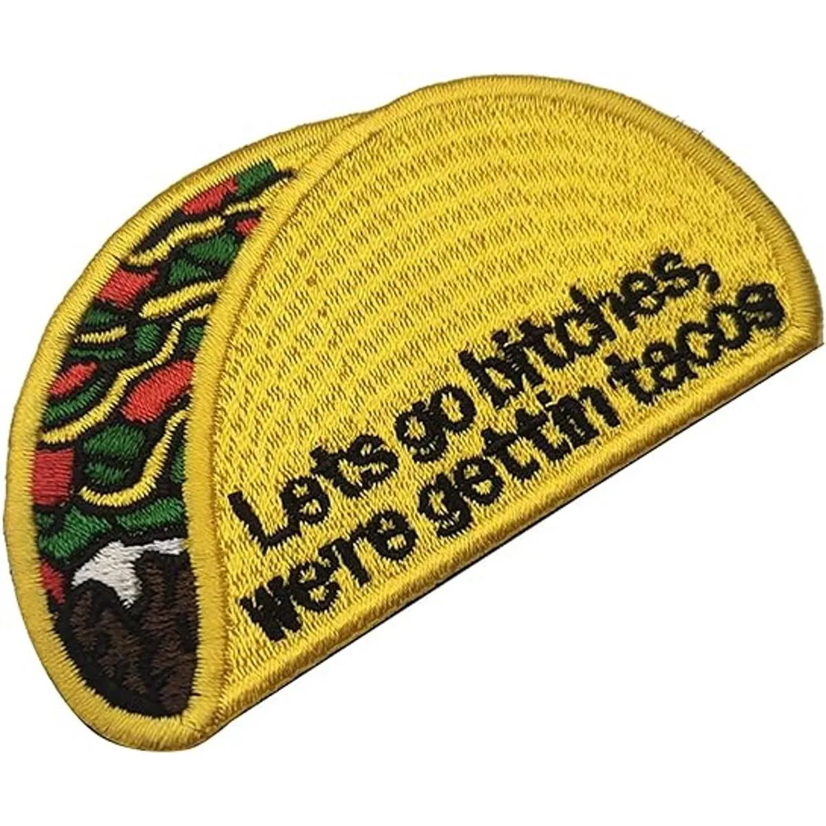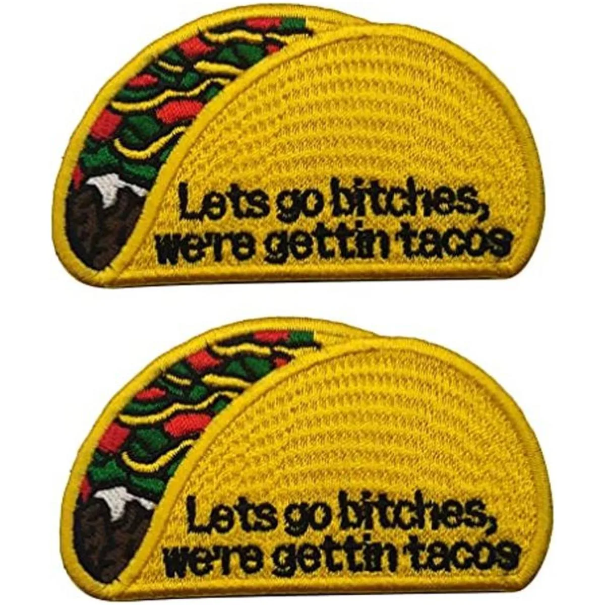 Parche bordado Lets Go Bitches We Gettin Tacos, 2 piezas de parches de tela para coser, táctica, moral militar, emblema decorativo, insignias