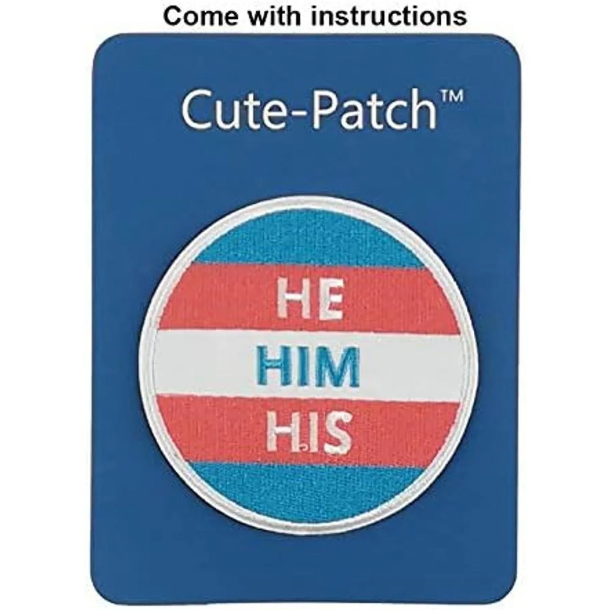 Parche bordado para planchar con texto en inglés My Pronouns are HE HIS HM