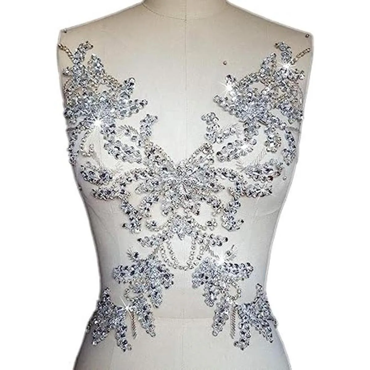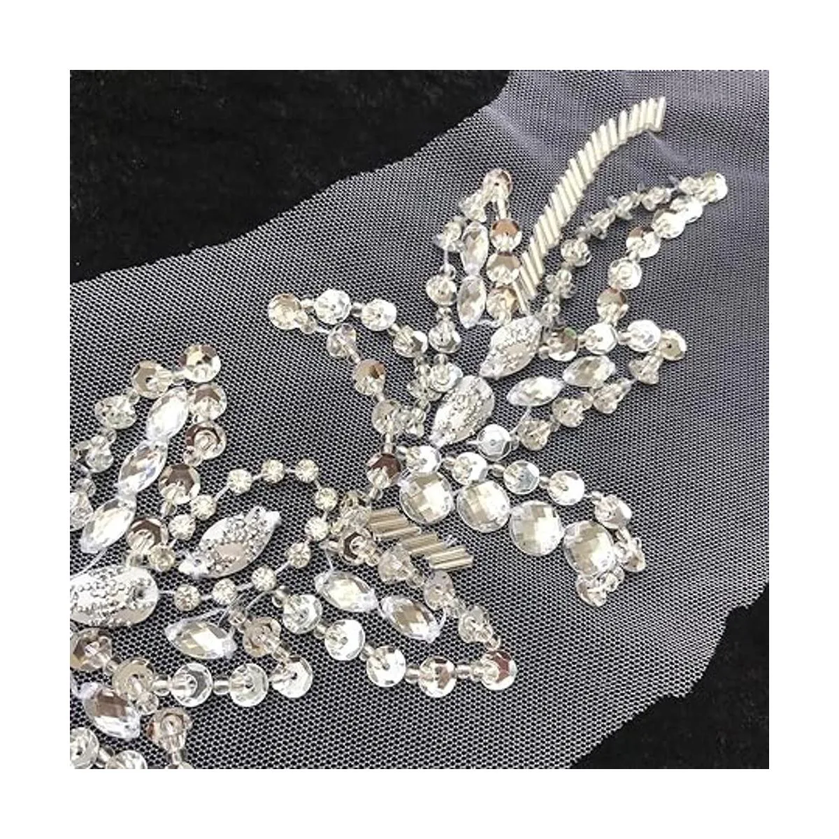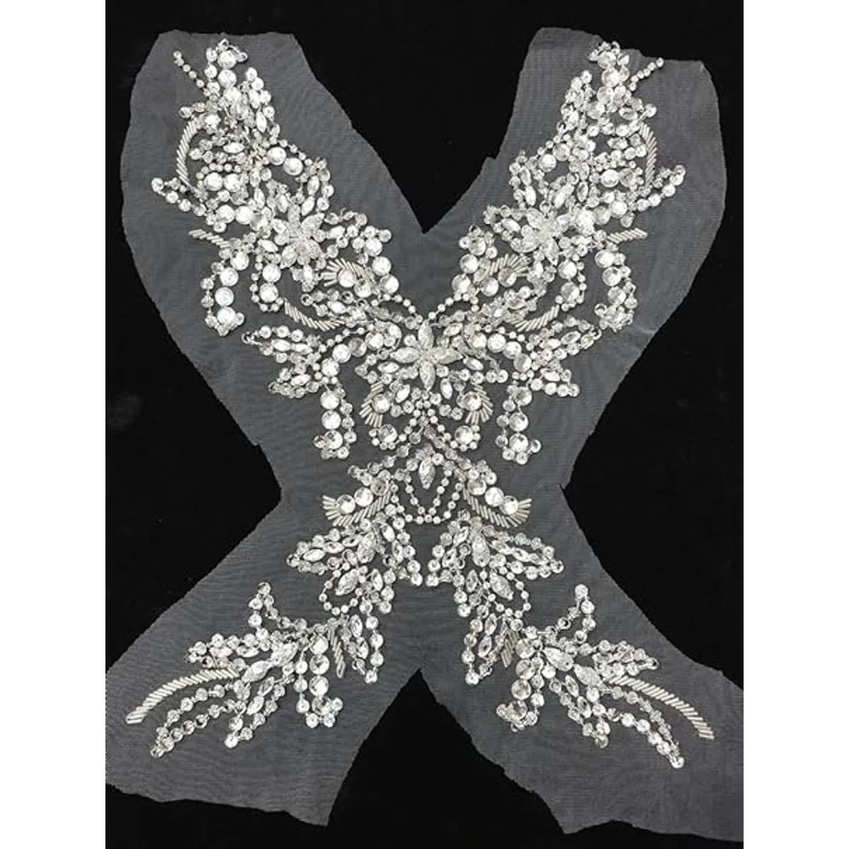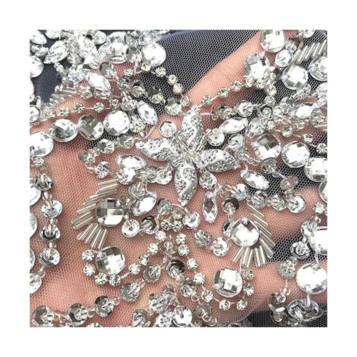 Parche de cristal único hecho a mano cosido en piedras de lentejuelas de 15.3 x 11.4 pulgadas, accesorio para vestido, cristal de costura para vestido de noche