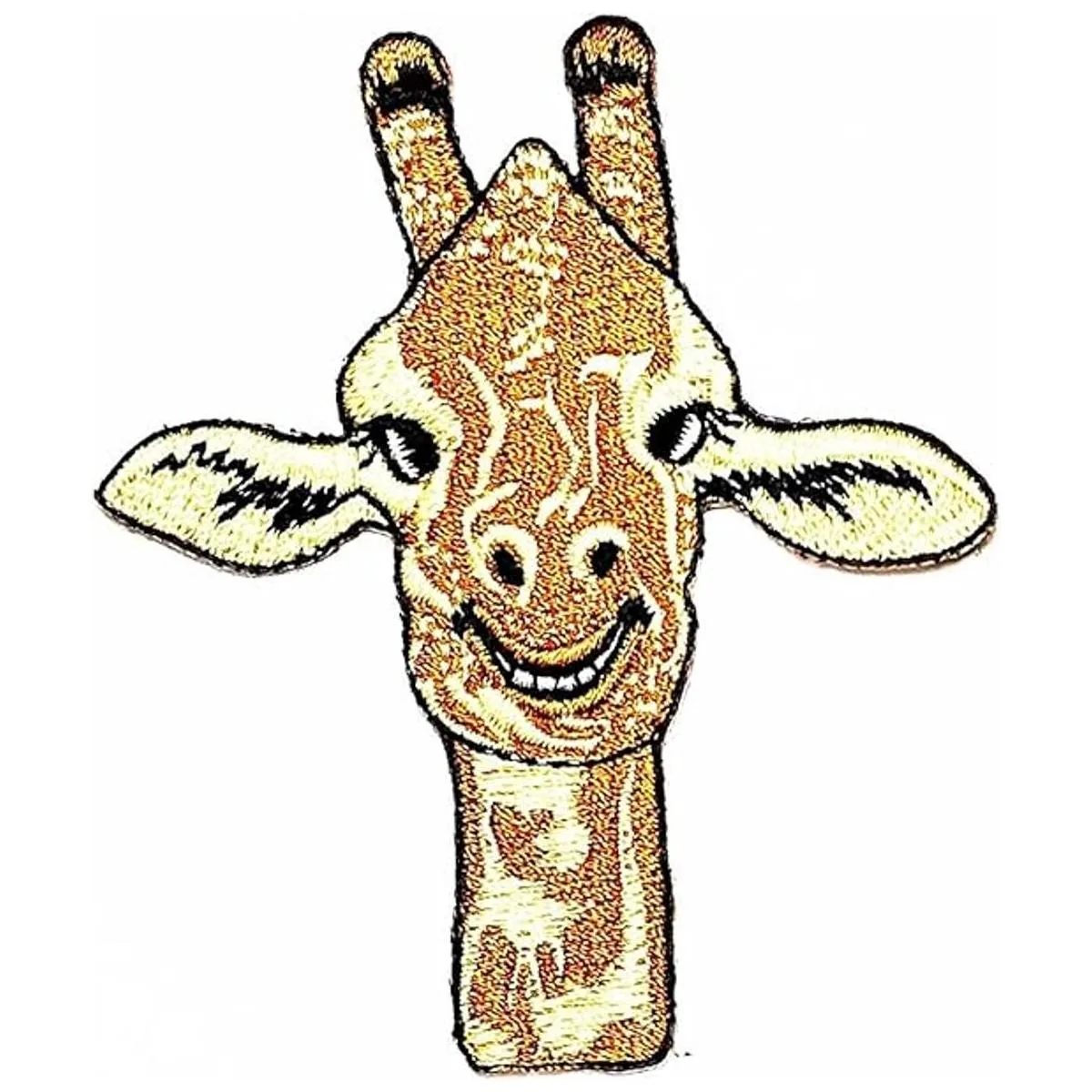 Parche de dibujos animados de cabeza de jirafa de 2.4 x 2.4 in. Parche bordado para manualidades, bonito apliques para coser y planchar en niños, para bolsos, chaquetas, ropa vaquera.