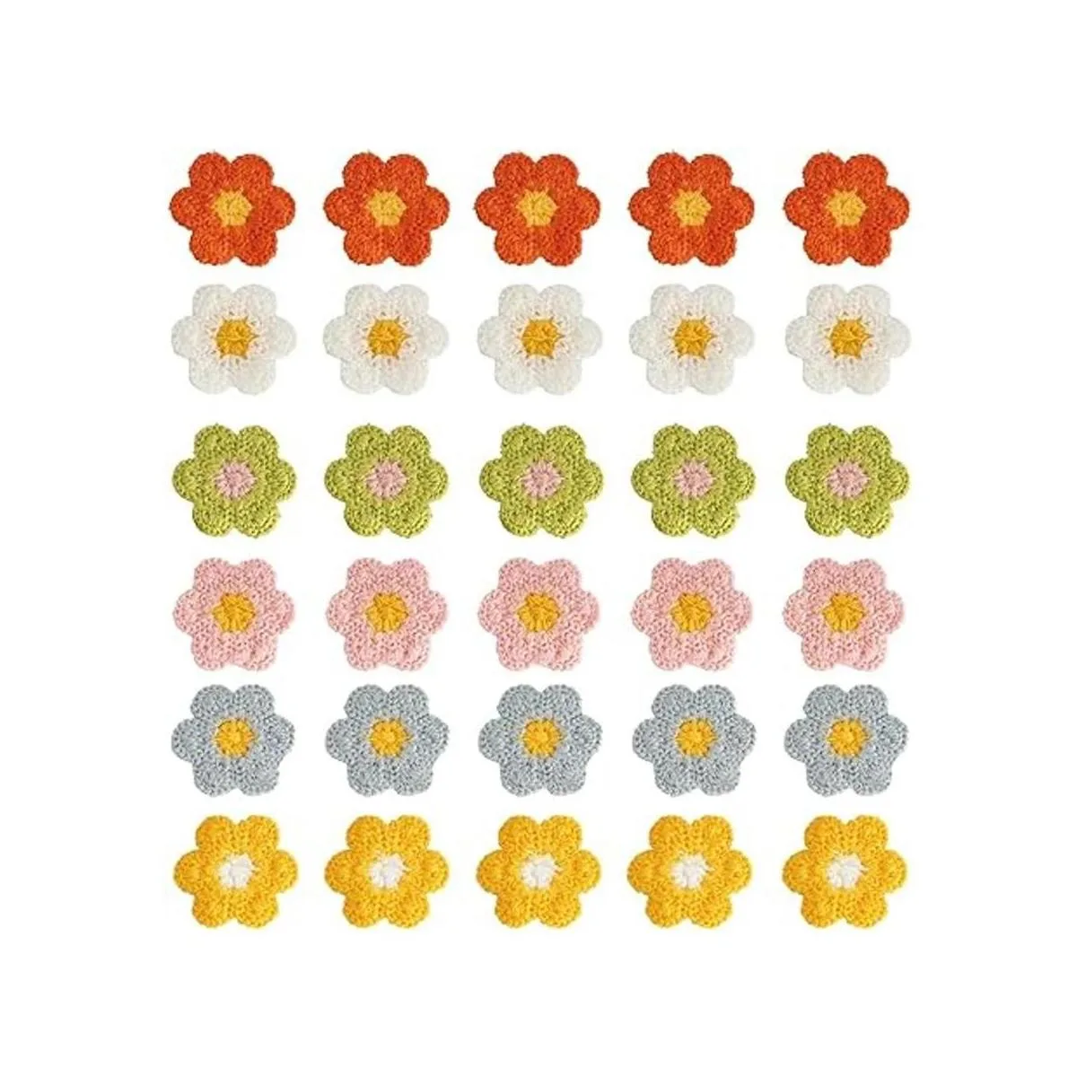 Parche de flores yyyangz 30 piezas de 6 colores para coser, parches florales de ganchillo, apliques de bricolaje, adornos para ropa, vestidos, jeans, chaquetas, sombreros, zapatos, bolsas, flores de ganchillo a mano