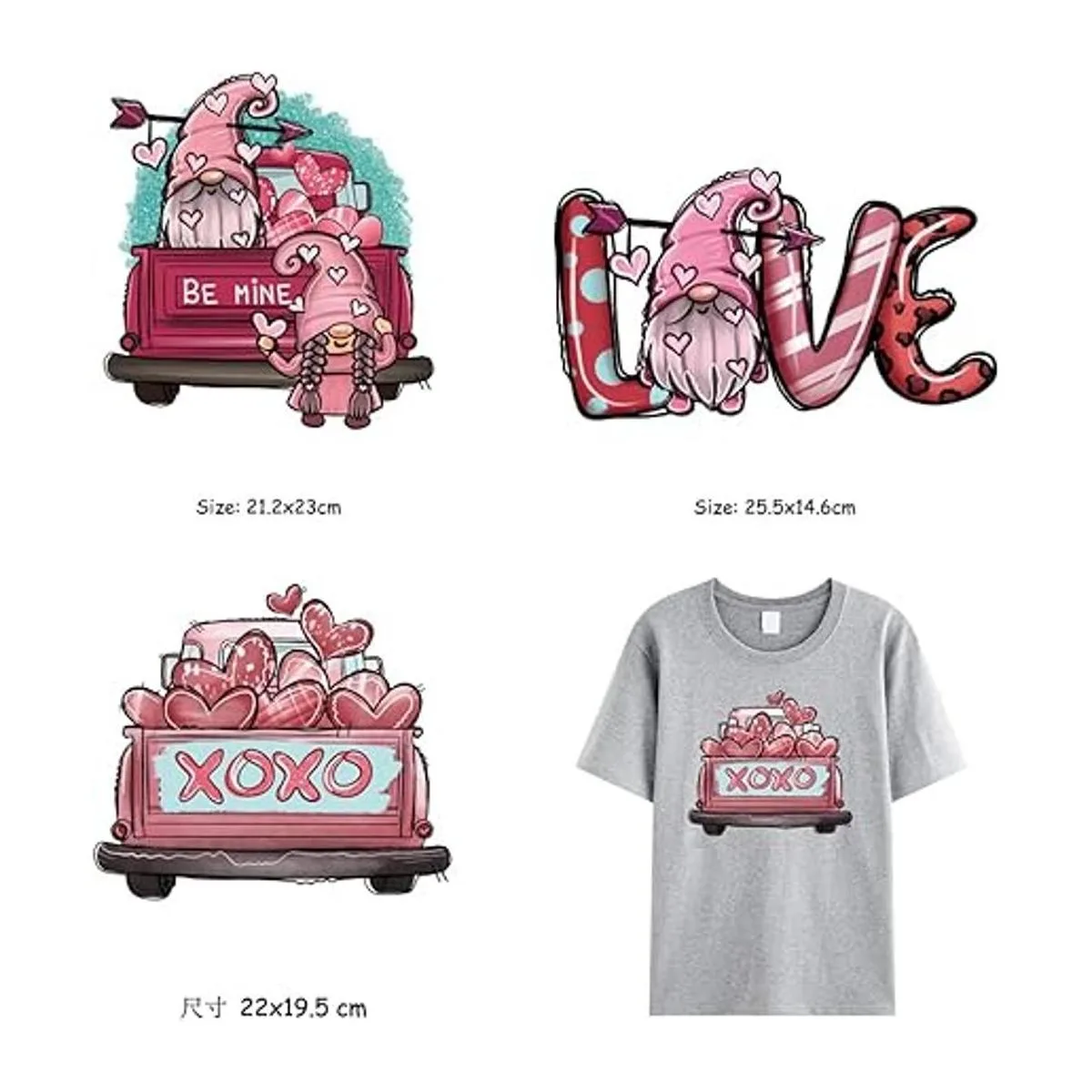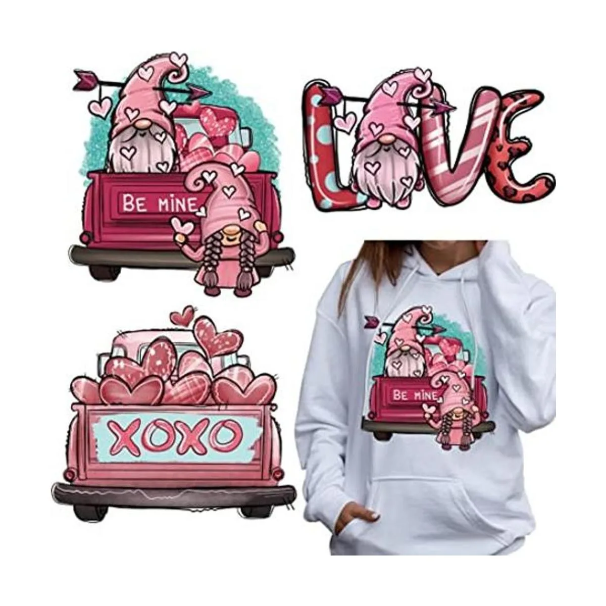 Parches adhesivos para planchar para el día de San Valentín, diseño de enano de automóvil, calcomanías de vinilo de transferencia de calor, apliques lavables, parches de ropa para camisetas, bolsas, chaquetas, decoración de manualidades, 3 hojas