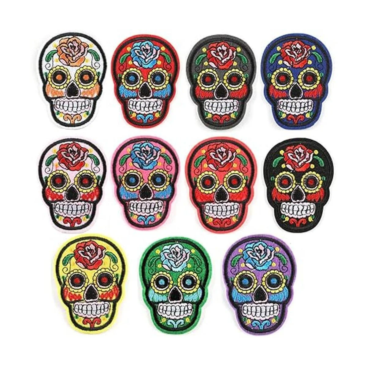 El paquete incluye: 10 diferentes parches decorativos con diseño de calavera punk y flores