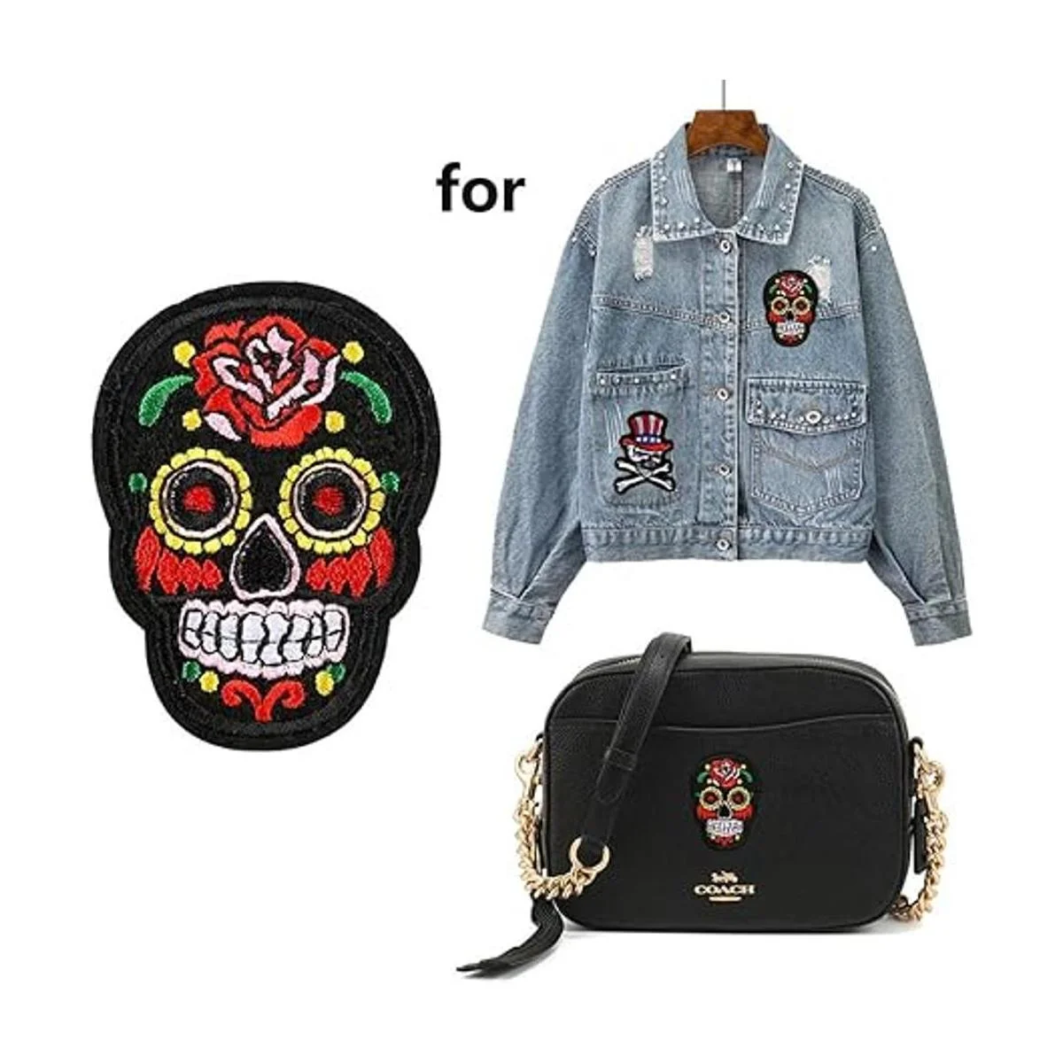 Parches de apliques decorativos parche bordado apliques corporativos parches DIY paño parche bordado conjunto DIY parches para ropa chaquetas reparación agujeros sombreros bolsas jeans decoraciones cabeza de cráneo