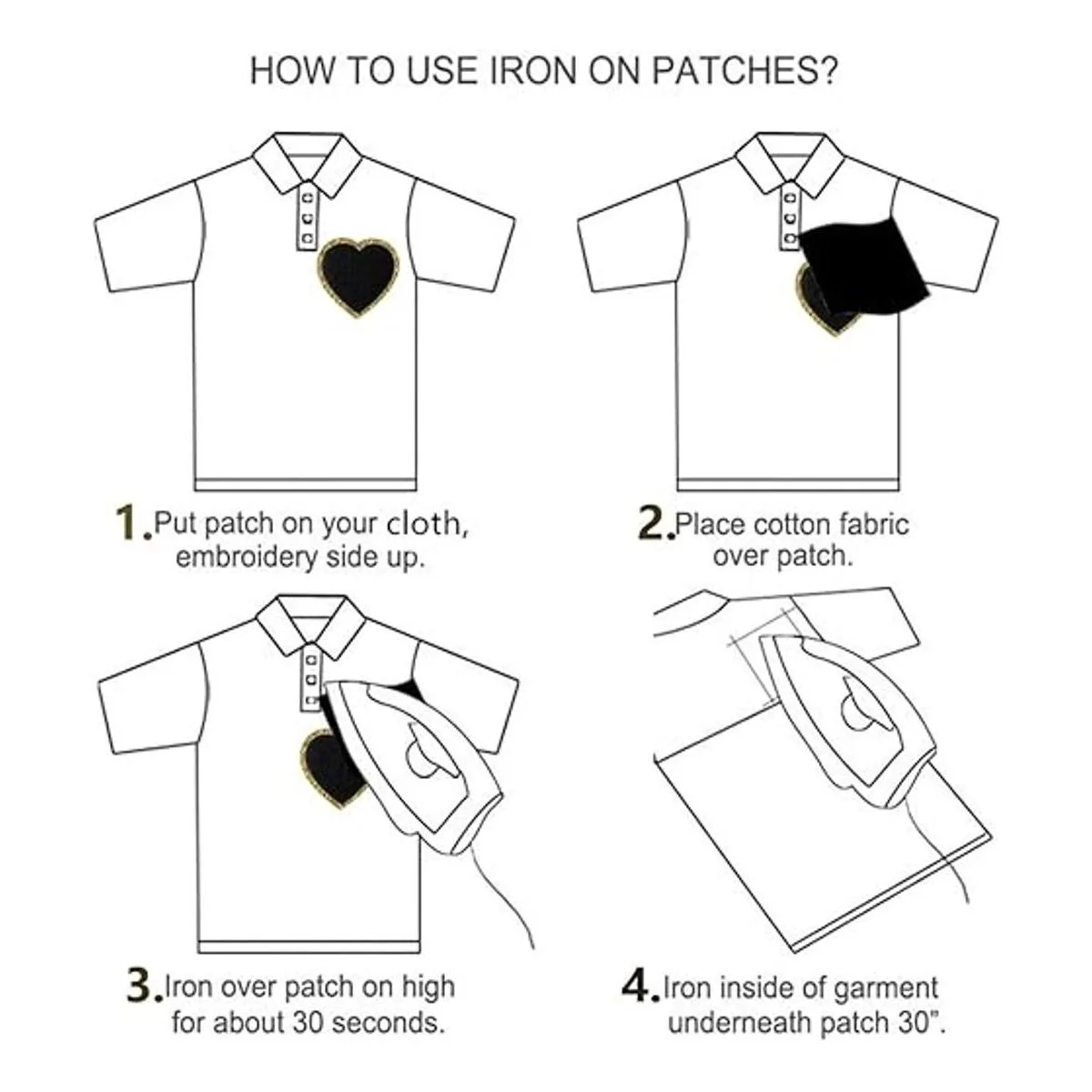 Fácil de usar: el parche de corazón se puede coser con aguja o planchar en un paño, fuerte adhesivo en seco en la parte posterior que se puede planchar fácilmente y cómodamente. Coser con aguja e hilo si se lava con frecuencia será mejor.