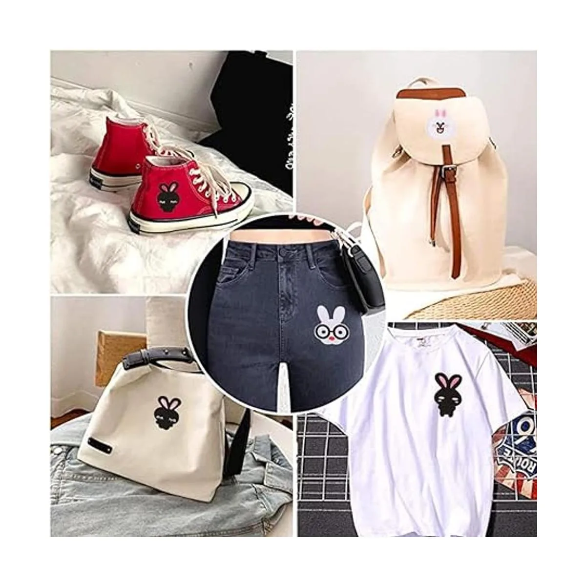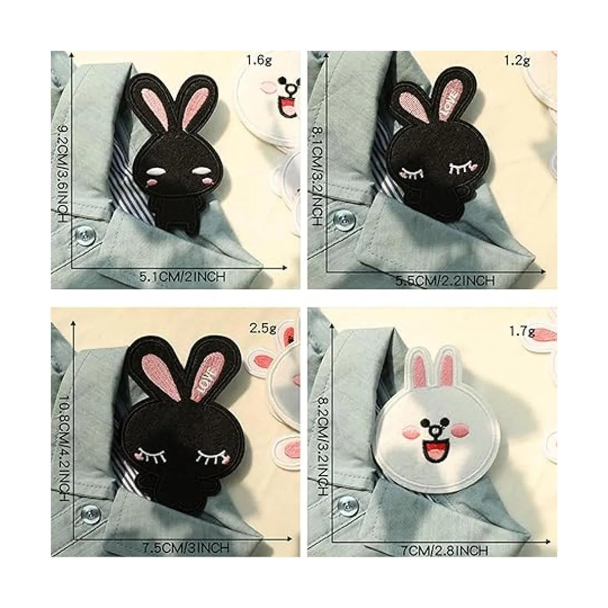 Rabbit patches can be used to decorate holes and make it a new one. Also use these patches to decorate other clothing, make the clothes more beautiful