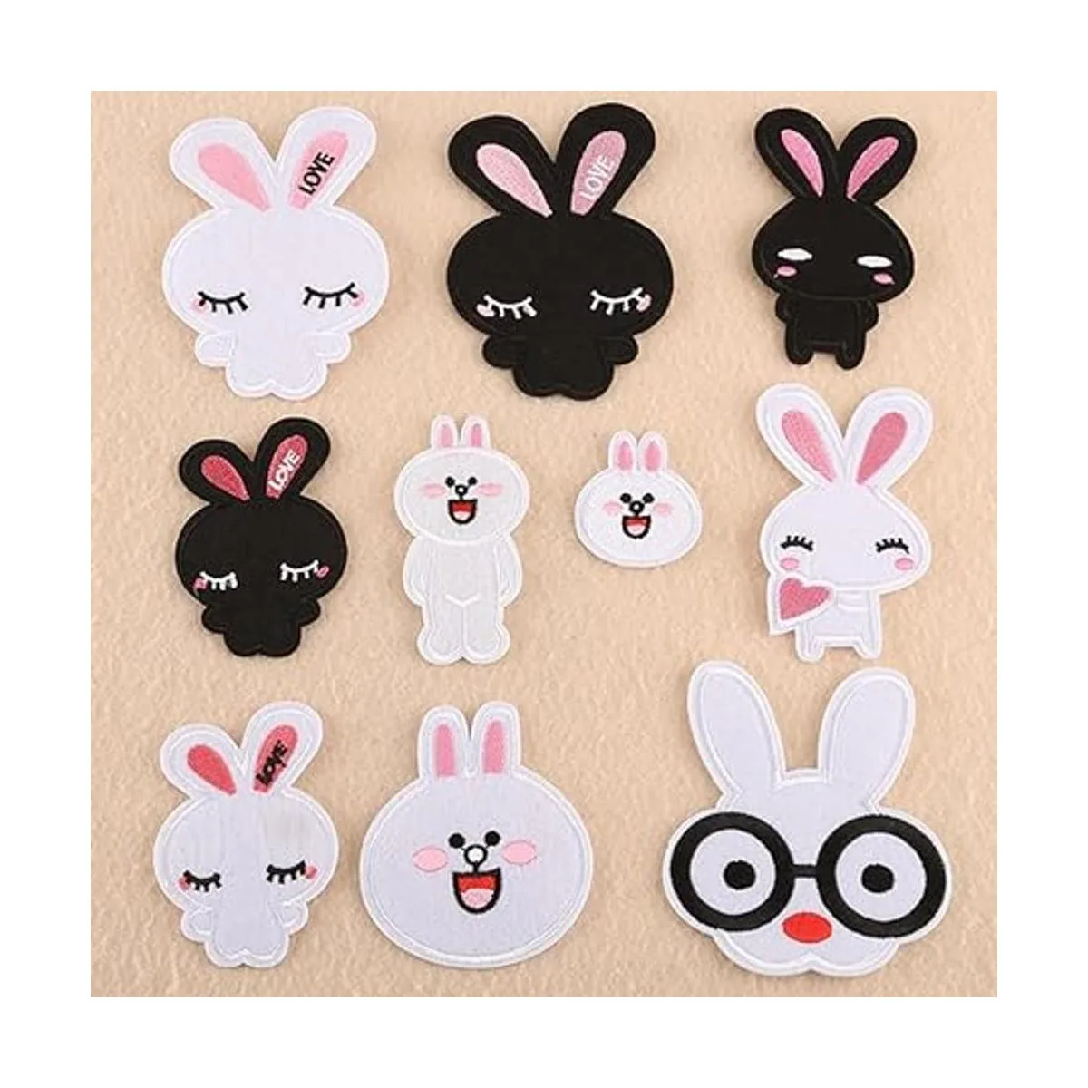 The rabbit embroidered patch package include 10 Pcs cute bunnies and an using instruction manual
