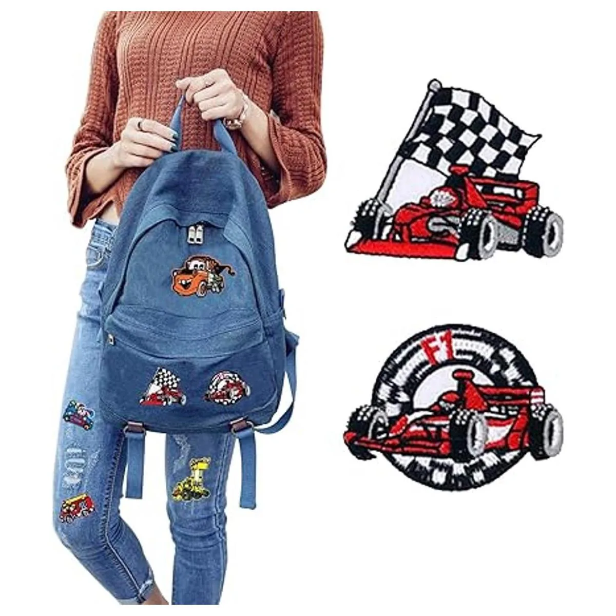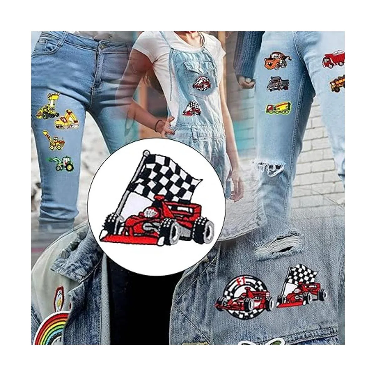 Parches de planchado para coche, excavadora de coches, coches de carreras, parches para planchar, Woohome 16 piezas para coser en el coche, parches para coser para niños, manualidades, ropa, vaqueros, chaquetas, chaquetas, bolsos, kit de reparación para planchar