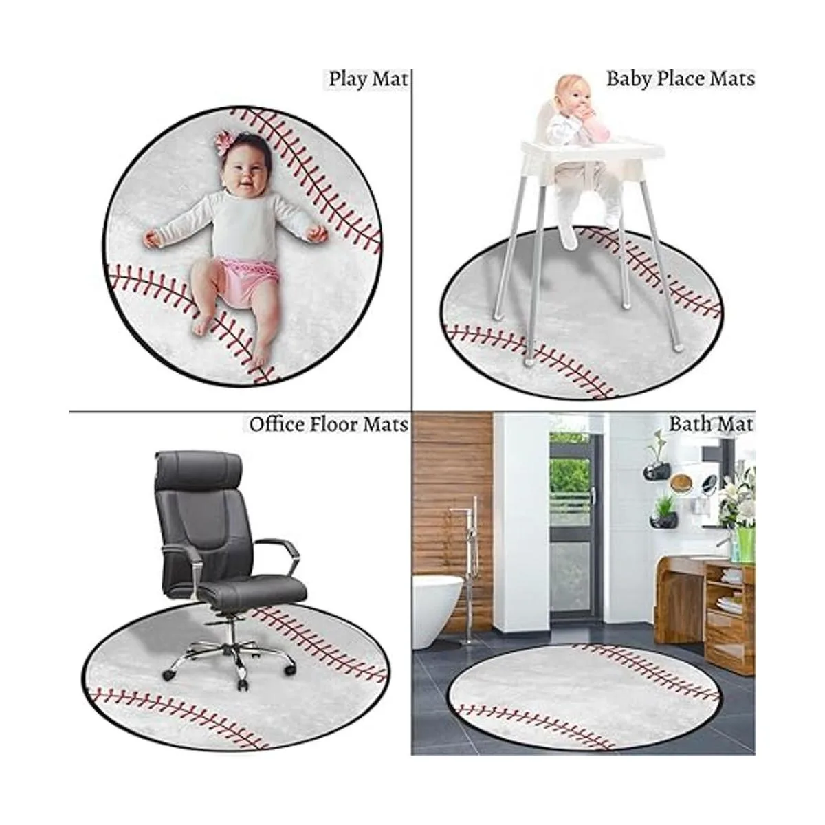 Tamaño de la alfombra: 36.2 in, alfombra de béisbol para dormitorio de niños, adecuada para sala de estar, dormitorio, baño para que los niños jueguen, yoga femenino, sala de lectura resistente, etc.