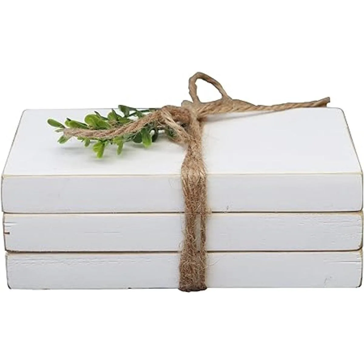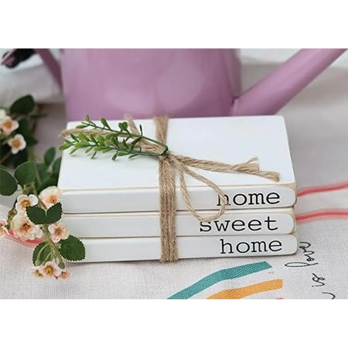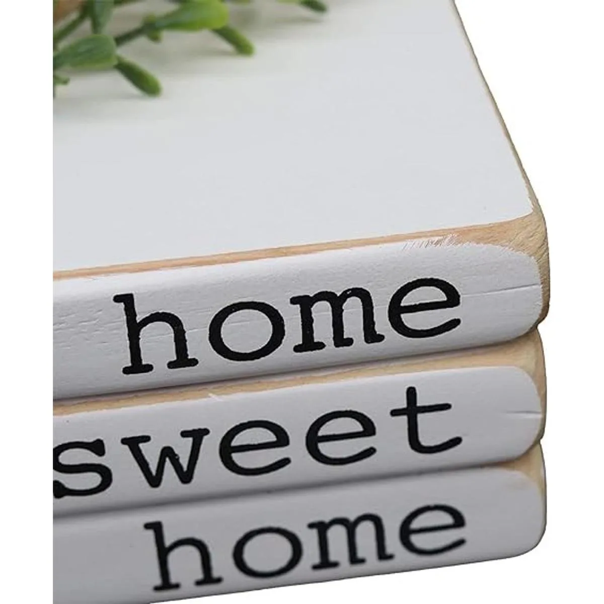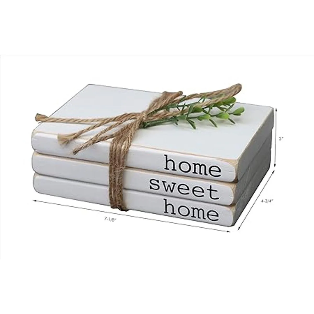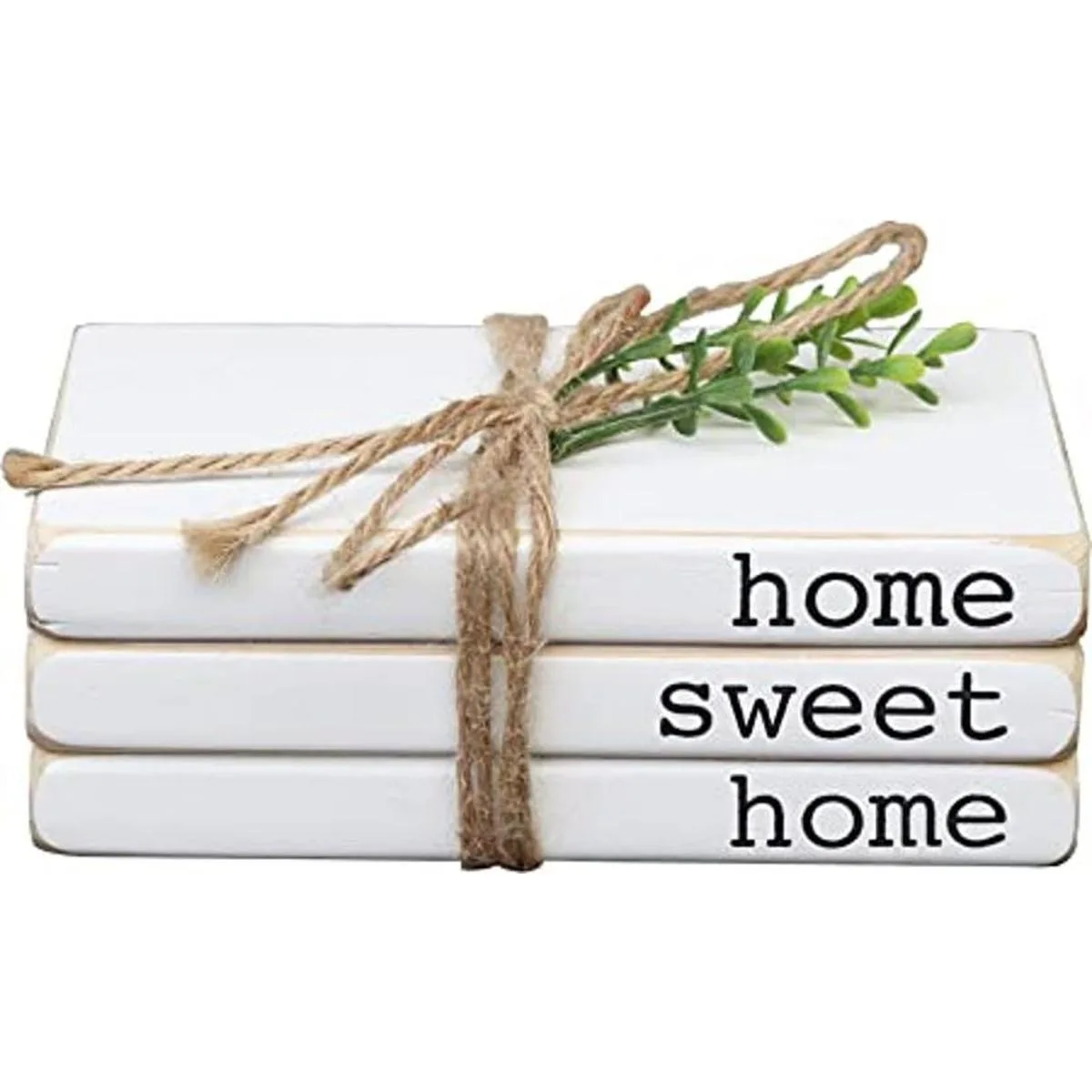 Parisloft Pequeño apilamiento de libros de madera, decoración decorativa de madera sintética, letrero de madera blanqueada con citas, hogar dulce