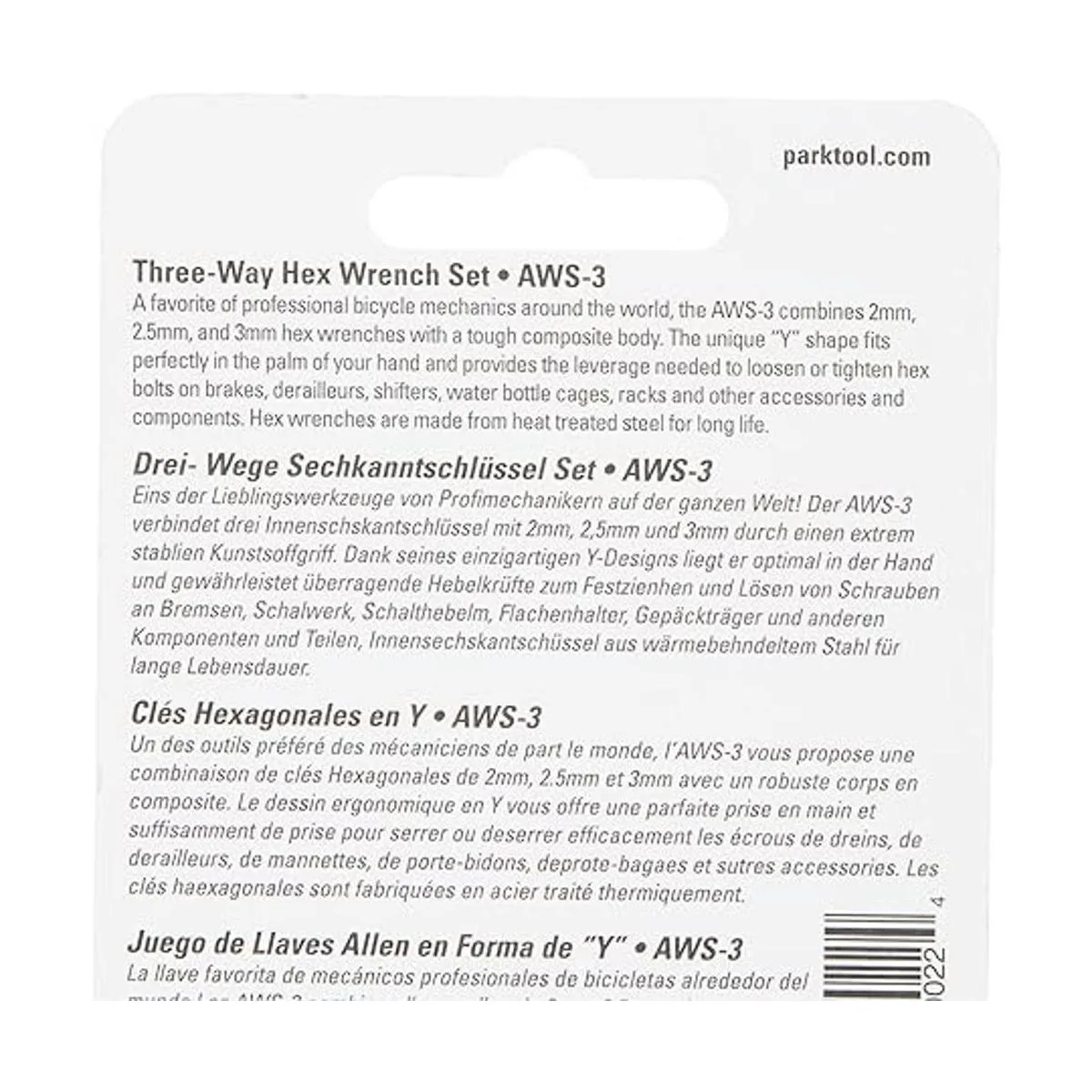 Park Tool AWS3 Llave hexagonal para bicicleta 3 vías, 0.079 in, 0.098 in, 0.118 in
