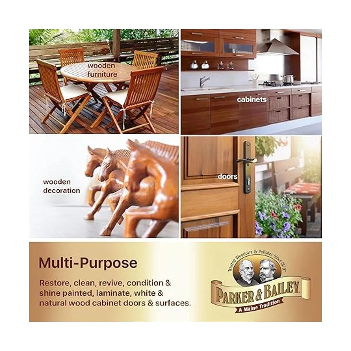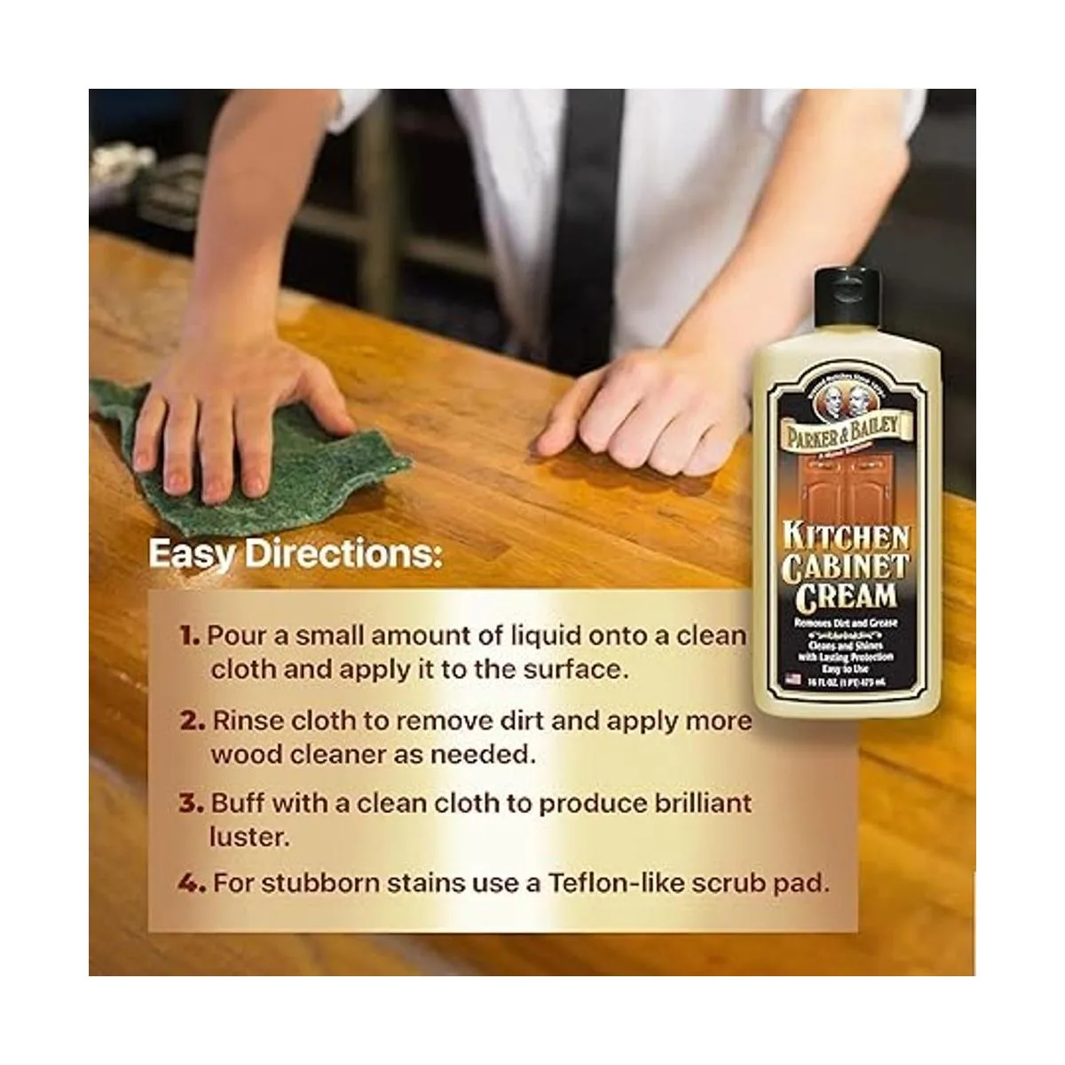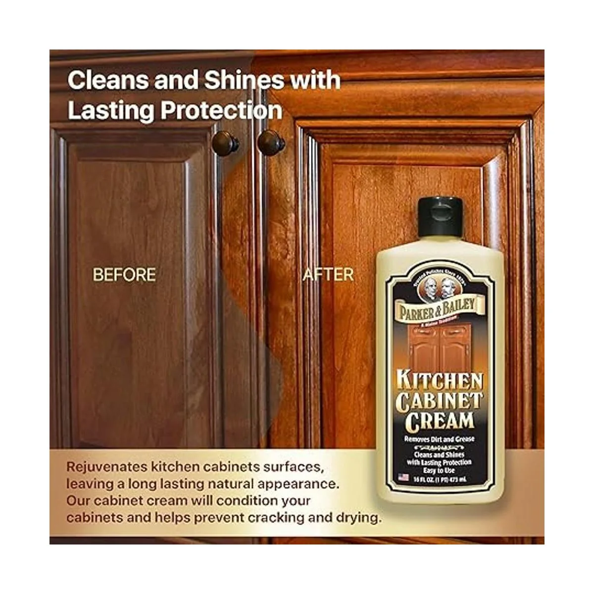 PARKER BAILEY Crema de armario de cocina Limpiador de madera multisuperficie y pulido de muebles de limpieza de brillo rápido, protector de gabinetes de cocina, limpiador de superficies, suministros de limpieza de casa, mejoras del hogar, 8 onzas
