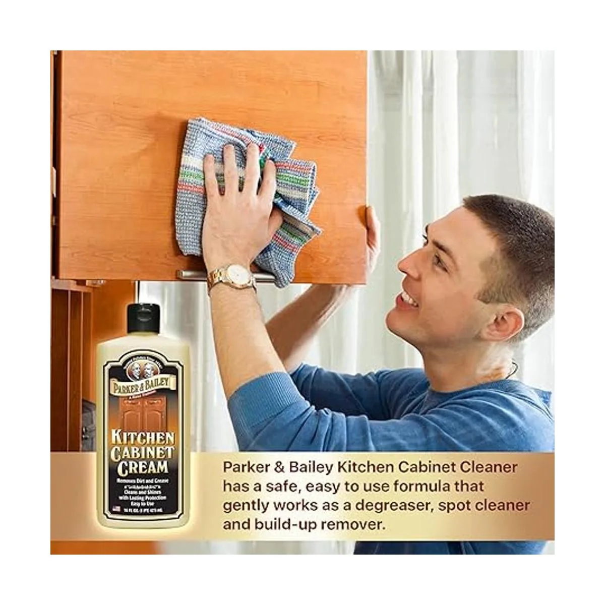 Limpiador de armarios de cocina: el limpiador de armarios de cocina Parker Bailey tiene una fórmula segura y fácil de usar que funciona suavemente como desengrasante, limpiador de manchas y removedor de acumulación. Rejuvenece los armarios con su belleza original y su baño natural