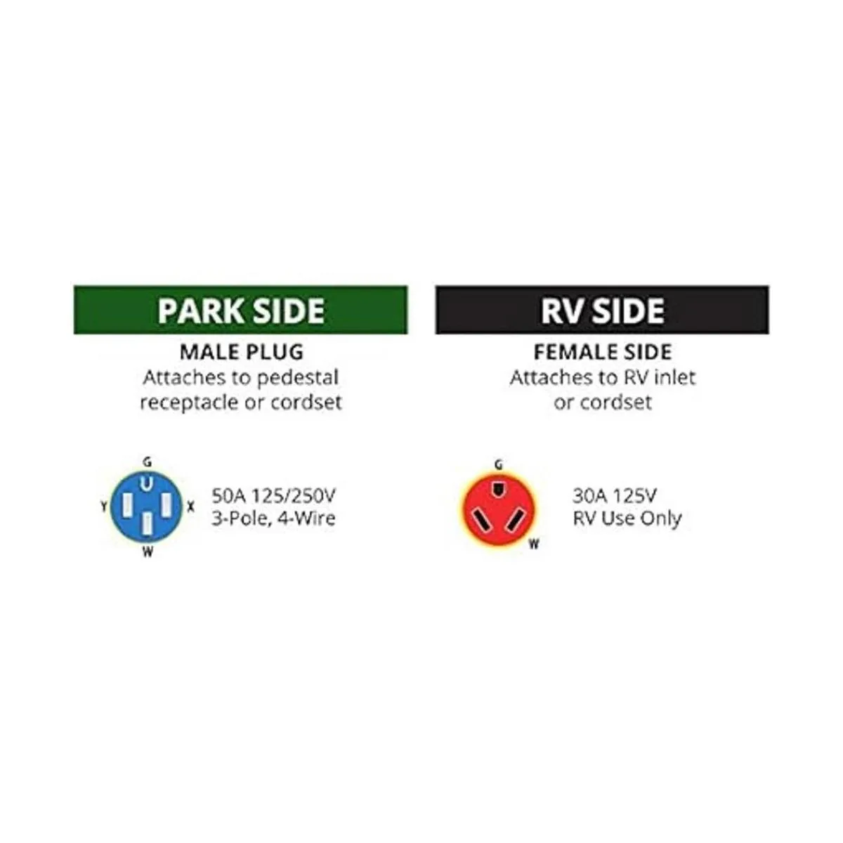 Permite a los usuarios conectar circuitos de 50 a a un estándar RV 30 amp hoja recta circuito.