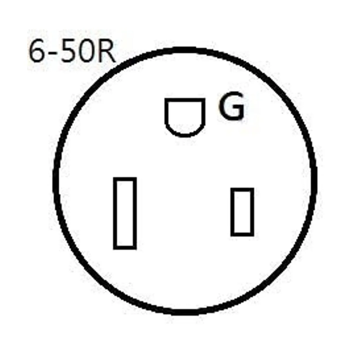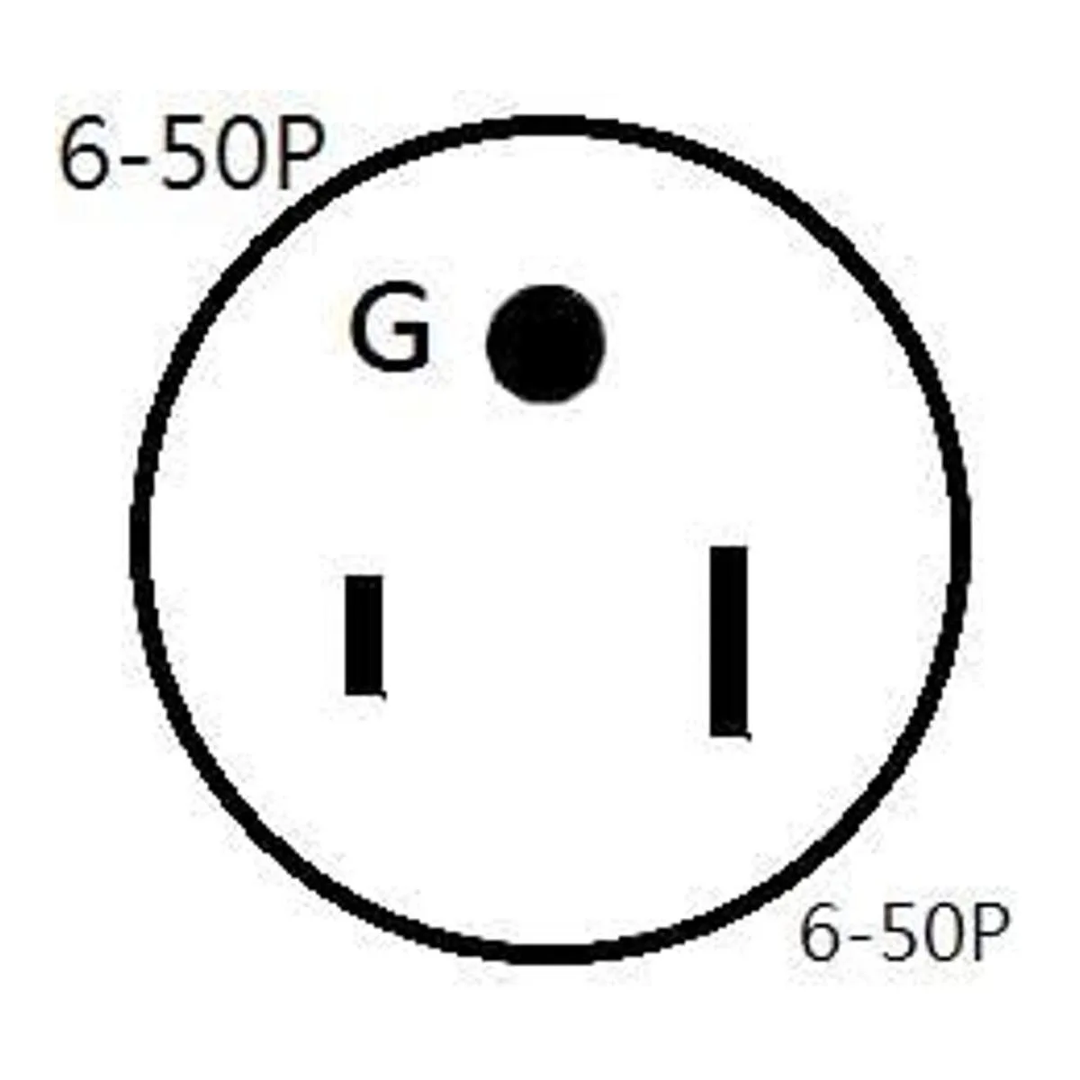 Soldador de 3 clavijas NEMA 650 conector iluminado en ángulo recto, 50 amperios, 250 voltaje, 12500 vatios.