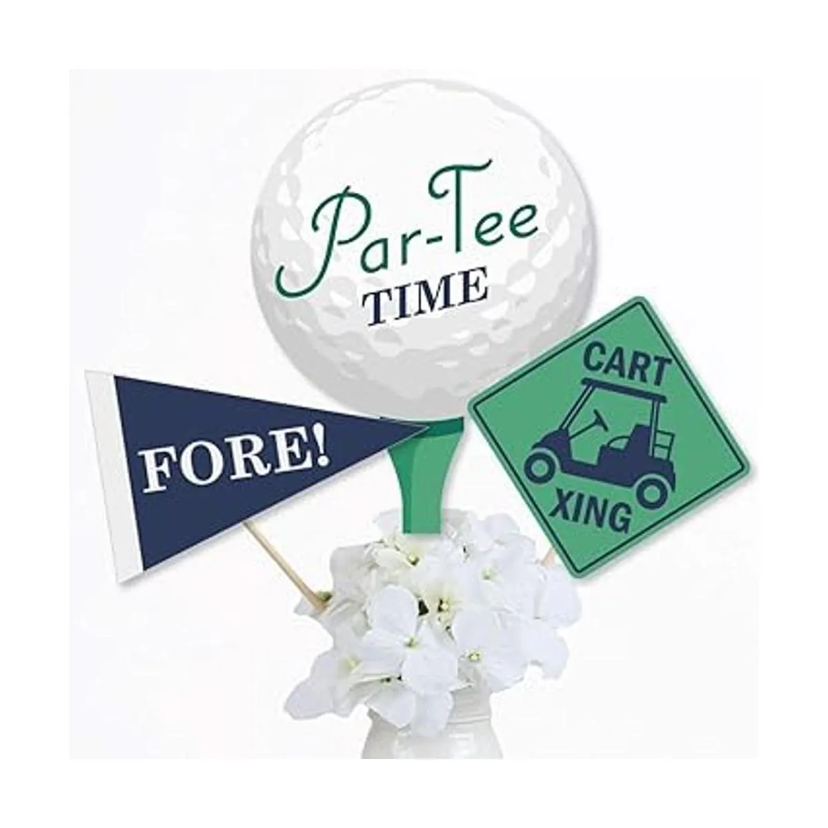Fácil decoración de fiesta: tiempo de partee: las decoraciones de mesa de golf se pueden utilizar como centros de mesa cuando se unen a los tacos incluidos e insertan en jarrones o arreglos florales. Acentúan fácilmente tu buffet de dulces de jubilación o fiesta de cumpleaños cuando los añades a tarros de boticario. Los adornos de mesa también son una gran adición a cualquier cabina de fotos. Los recortes de forma grande harán que tus fotos de fiesta se compartan al instante. Los palos de centro de golf seguramente harán una declaración como elijas usarlos