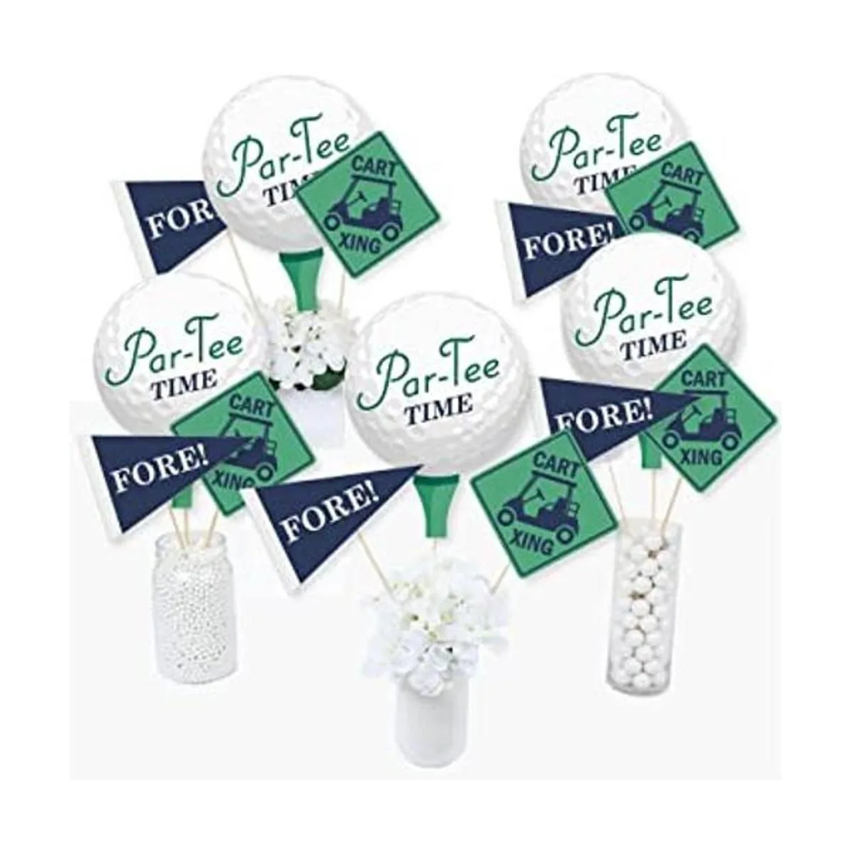 ParTee Time Palitos de centro de mesa para fiesta de cumpleaños o jubilación, juego de 15