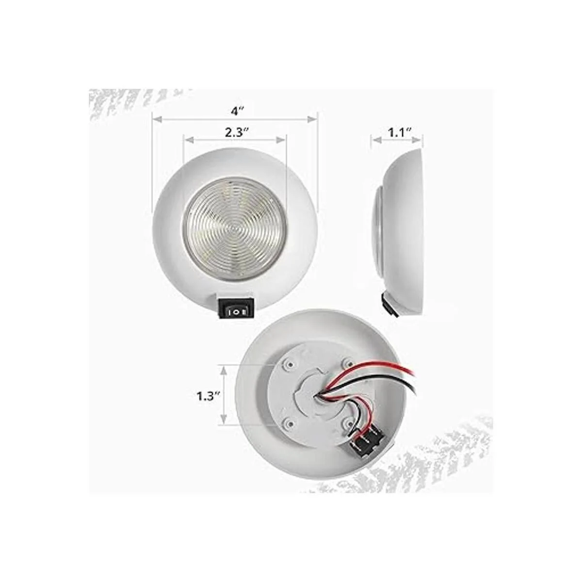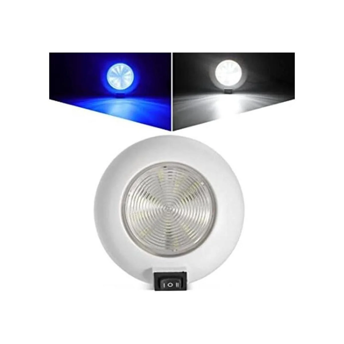 Esta luz redonda de 4 pulgadas para caravana o remolque de barco funciona con interruptor basculante de 3 vías blanco/apagado/azul y combinación de 9 azules/12 LED blancos es ideal para uso interior en barcos, caravanas, autocaravanas y otras aplicaciones