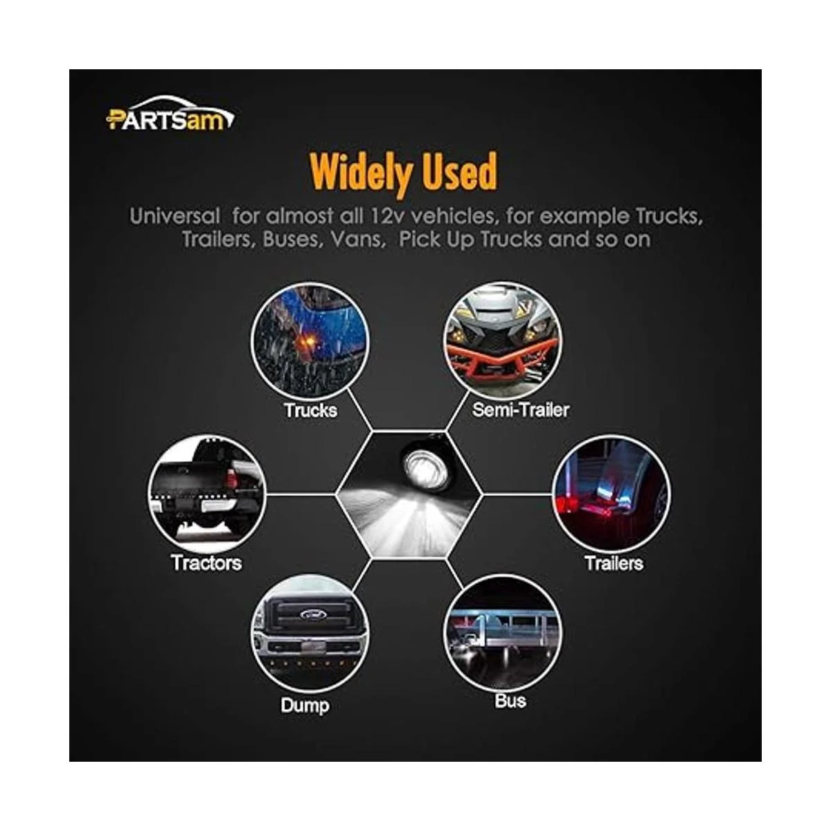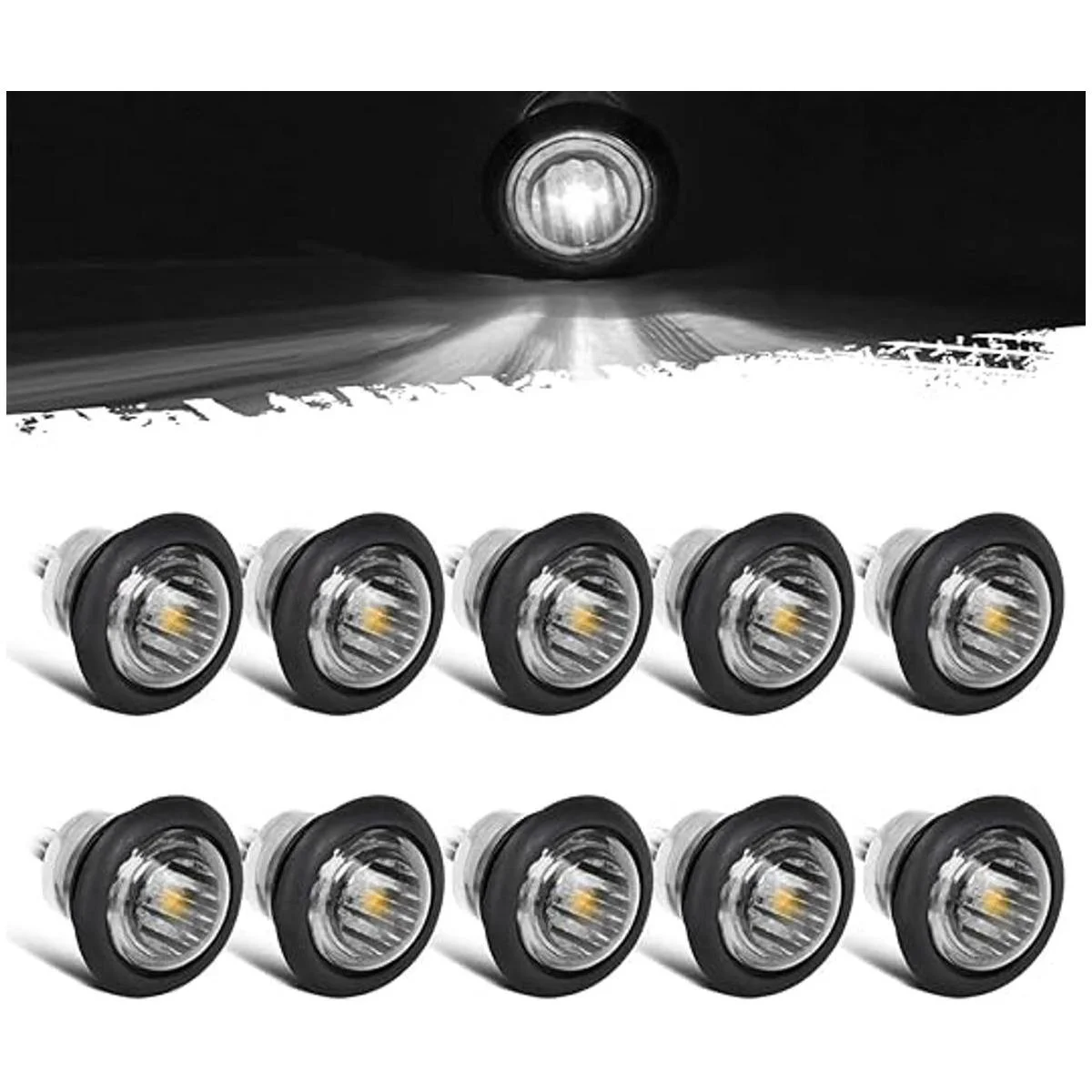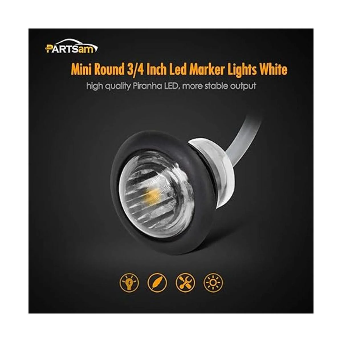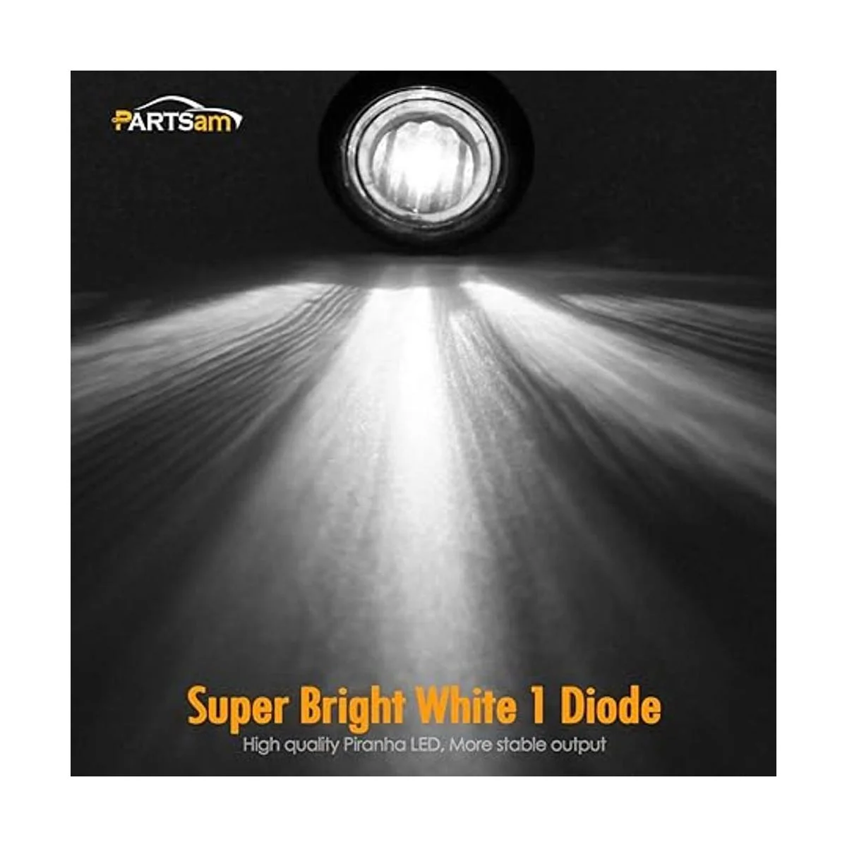 Partsam 10 piezas de 34 pulgadas LED blanco marcador lateral luz de botón de repuesto lente transparente, sellado de 34 pulgadas blanco remolque, espacio libre LED y luces laterales con ojales para camioneta