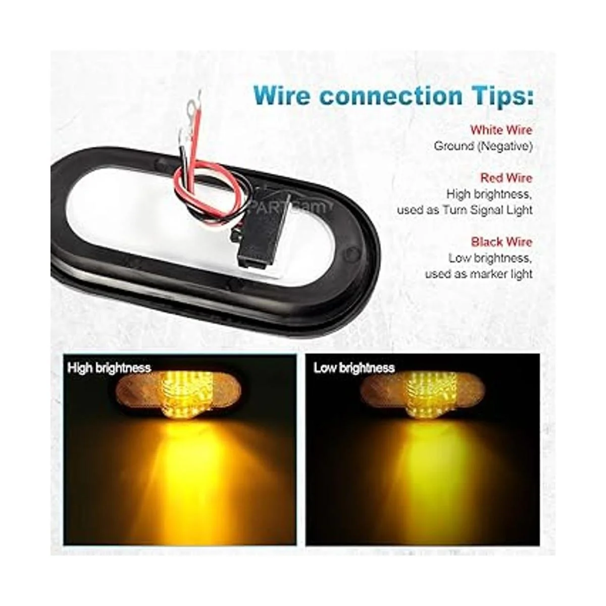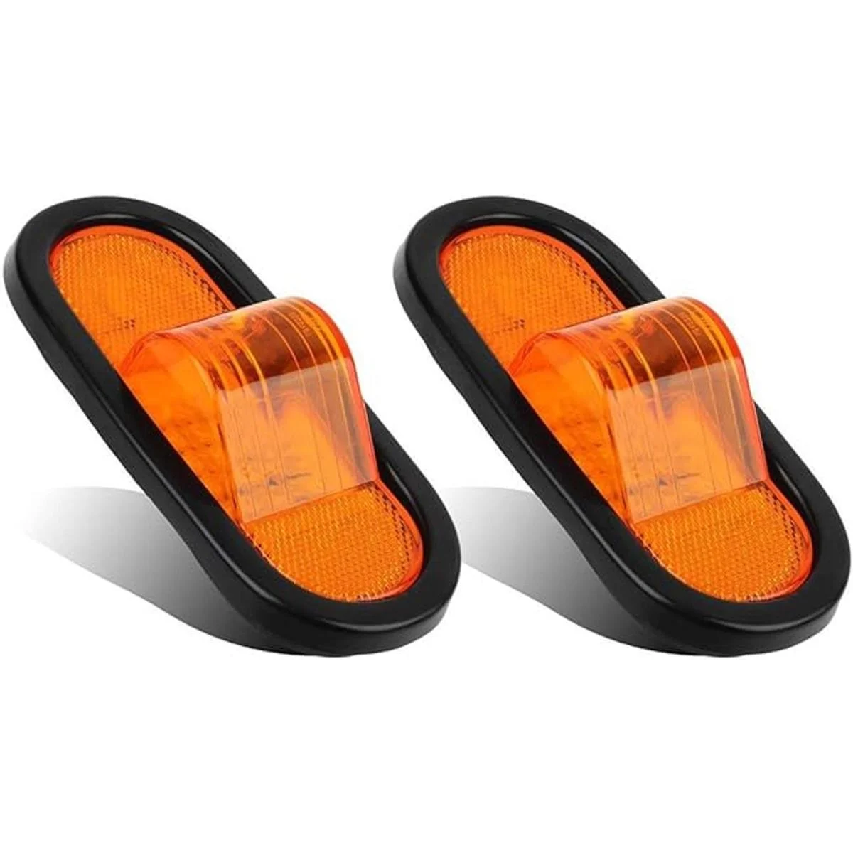 Partsam 2 luces de marcador ámbar de 6.5 pulgadas con luz de giro medio, soporte de goma, 24 LED con lente reflejo, universal, impermeable, 6 pulgadas, ovalado, LED, marcador de mitad y señal de giro, semirremolque, luz