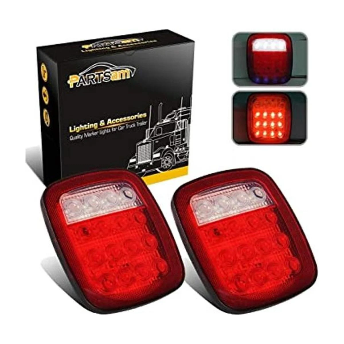 Partsam 2 luces rojas y blancas de parada, giro, cola, señal y luces de respaldo para remolque de camioneta.