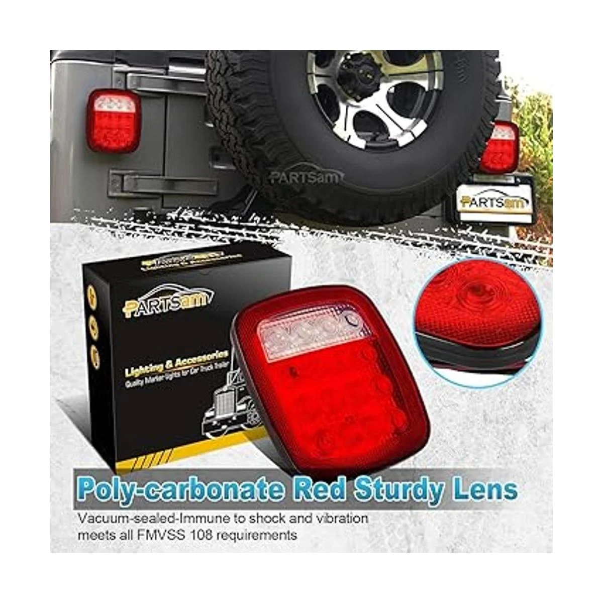 Partsam 2 luces universales de 16 luces LED de parada trasera de reversa, luces marcadoras de freno rojoblanco de repuesto para Jeep YJ JK CJ, camión, remolque, impermeables, 12 V