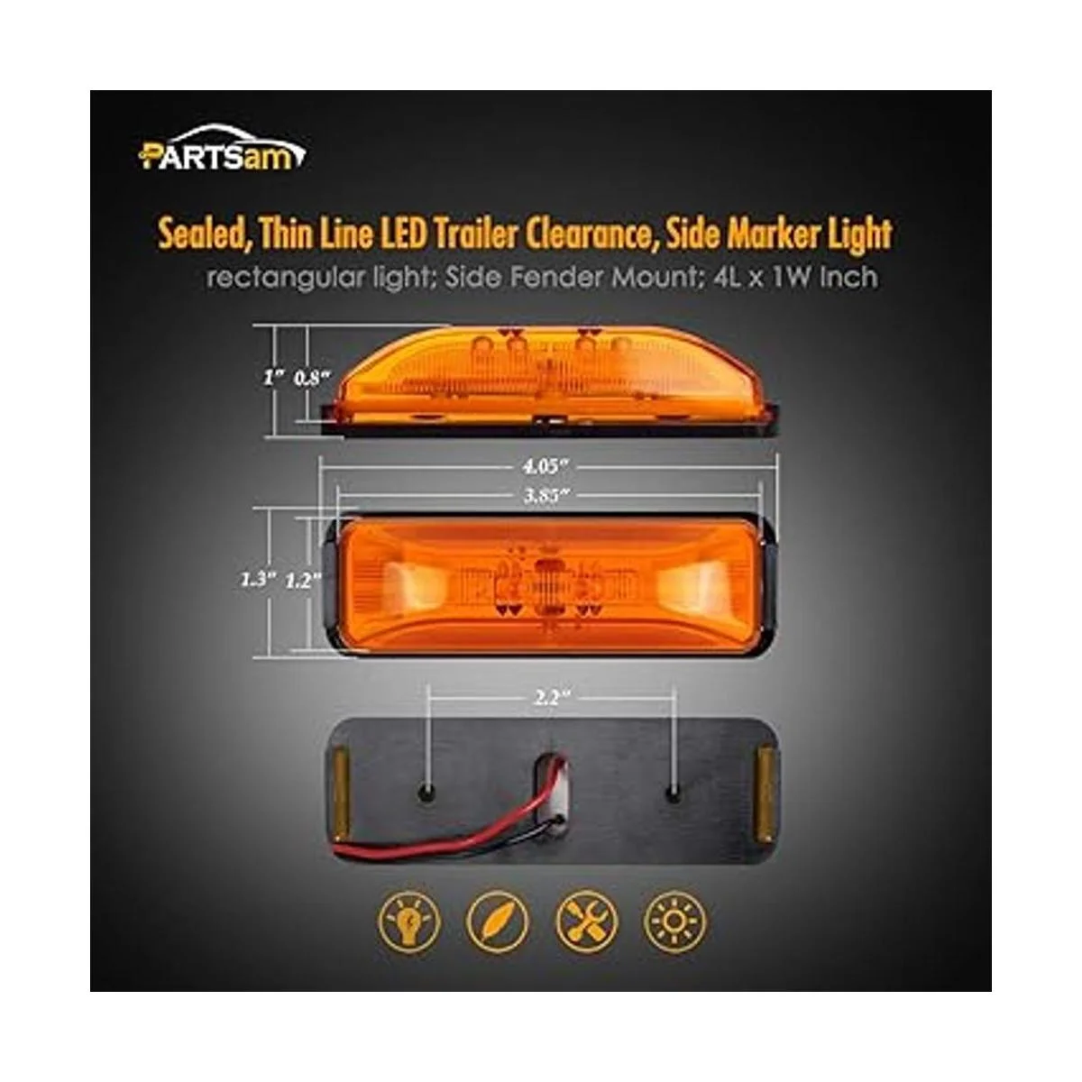 Partsam 4 luces de marcador lateral impermeables ámbarrojo 4 LED para remolque, camión, barco, DC12 V, cintura delgada
