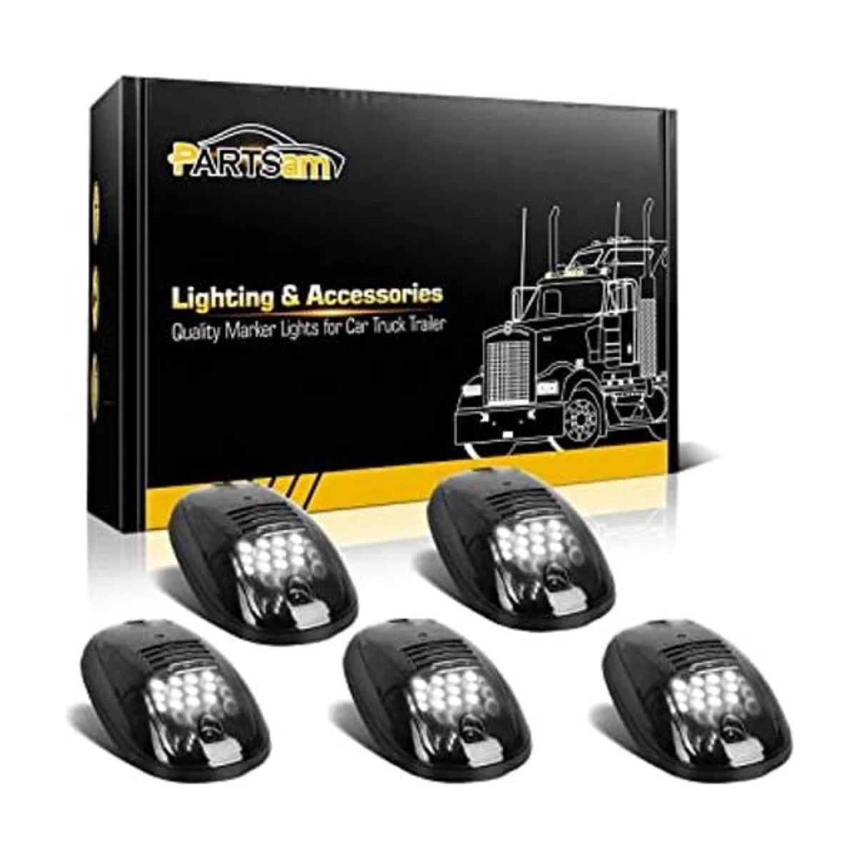 Partsam 5 luces LED de 12 luces LED ahumadas y blancas de techo de cabina 264146BK de repuesto para Dodge Ram 20032018 lente ahumadaluces blancas