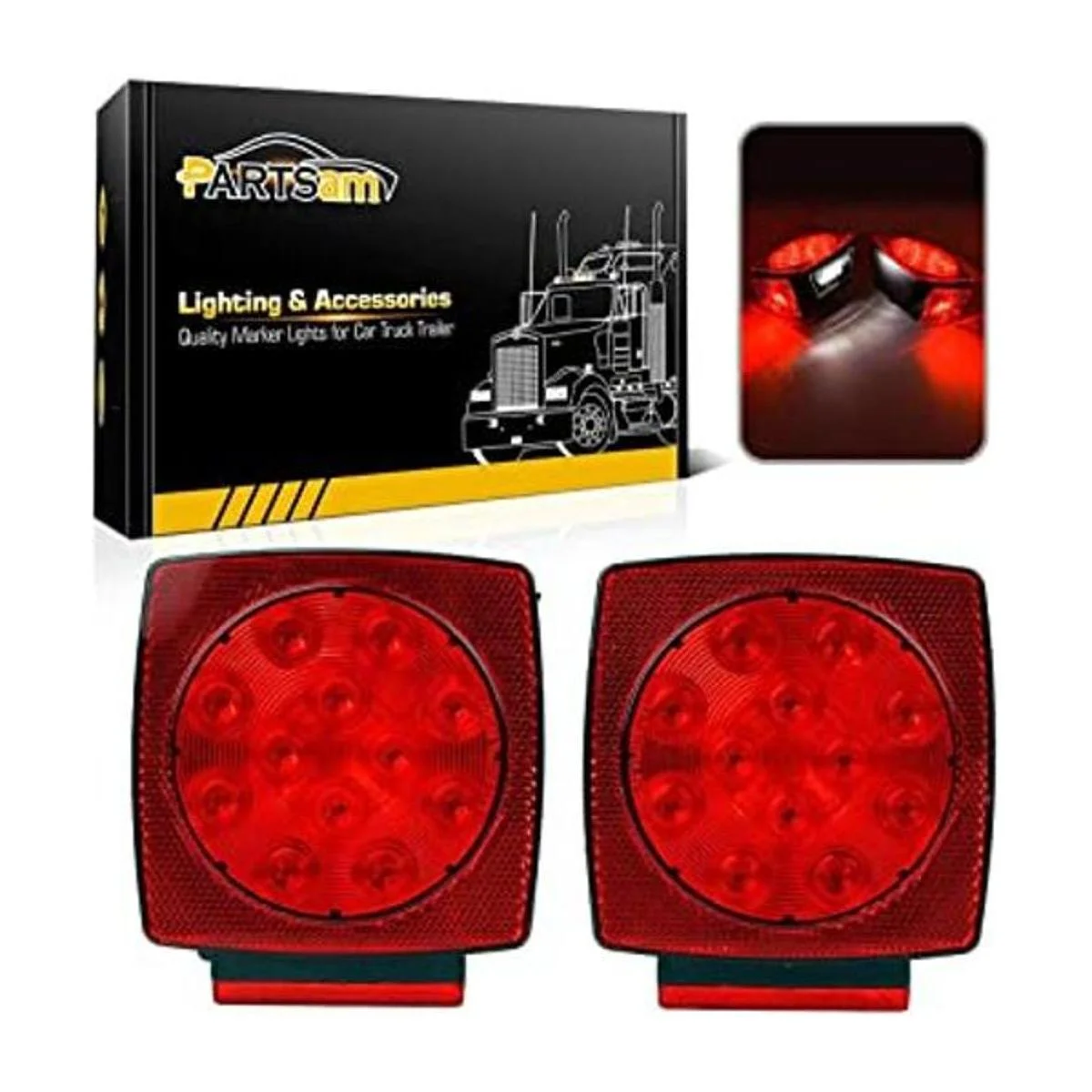 Partsam Faros LED, impermeables y cuadrados de 12 V para remolques, de color rojo, faros traseros de frenado y direccionales, para iluminar la matrícula, luces diurnas, para remolques de menos de 80 pulgadas, náutico, casa rodante, autocaravana o moto de nieve, impermeabilidad IP68, cumple con la normativa DOT