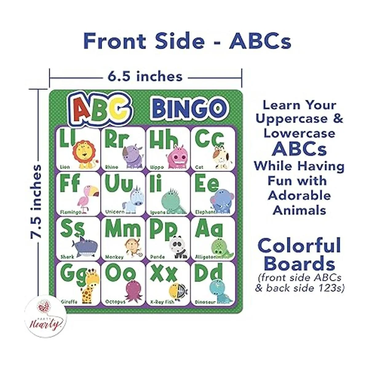 Party Hearty Juego de mesa de bingo ABC y 123 para niños de jardín de infantes y preescolares