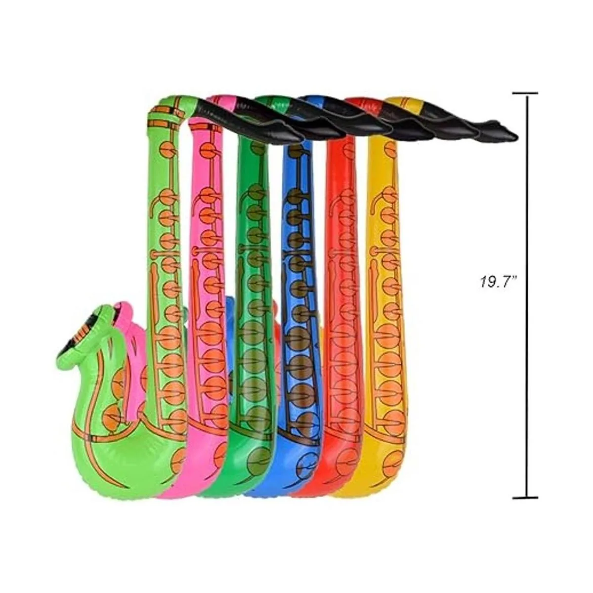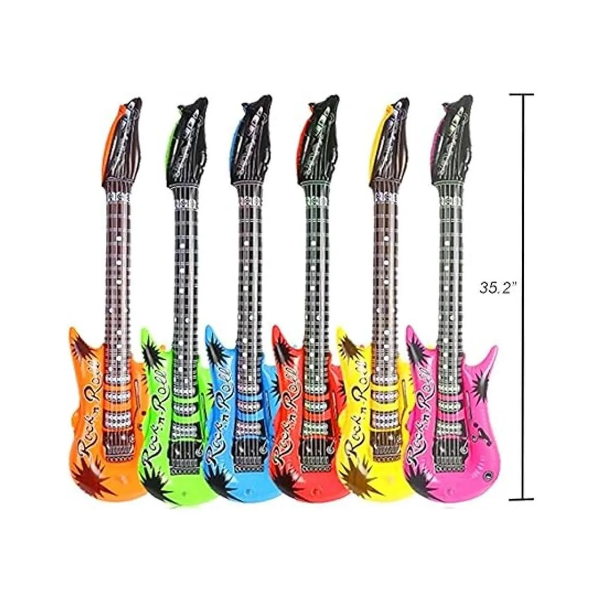Tamaño grande: Guitarra hinchable son 35.2 inches, inflable micrófonos son 13.7 inches, saxofón inflable es 19.7 inches y anteojos son 5.7 inches. son cerca de la tamaño real y más grande que la mayoría de otros similares juguetes.