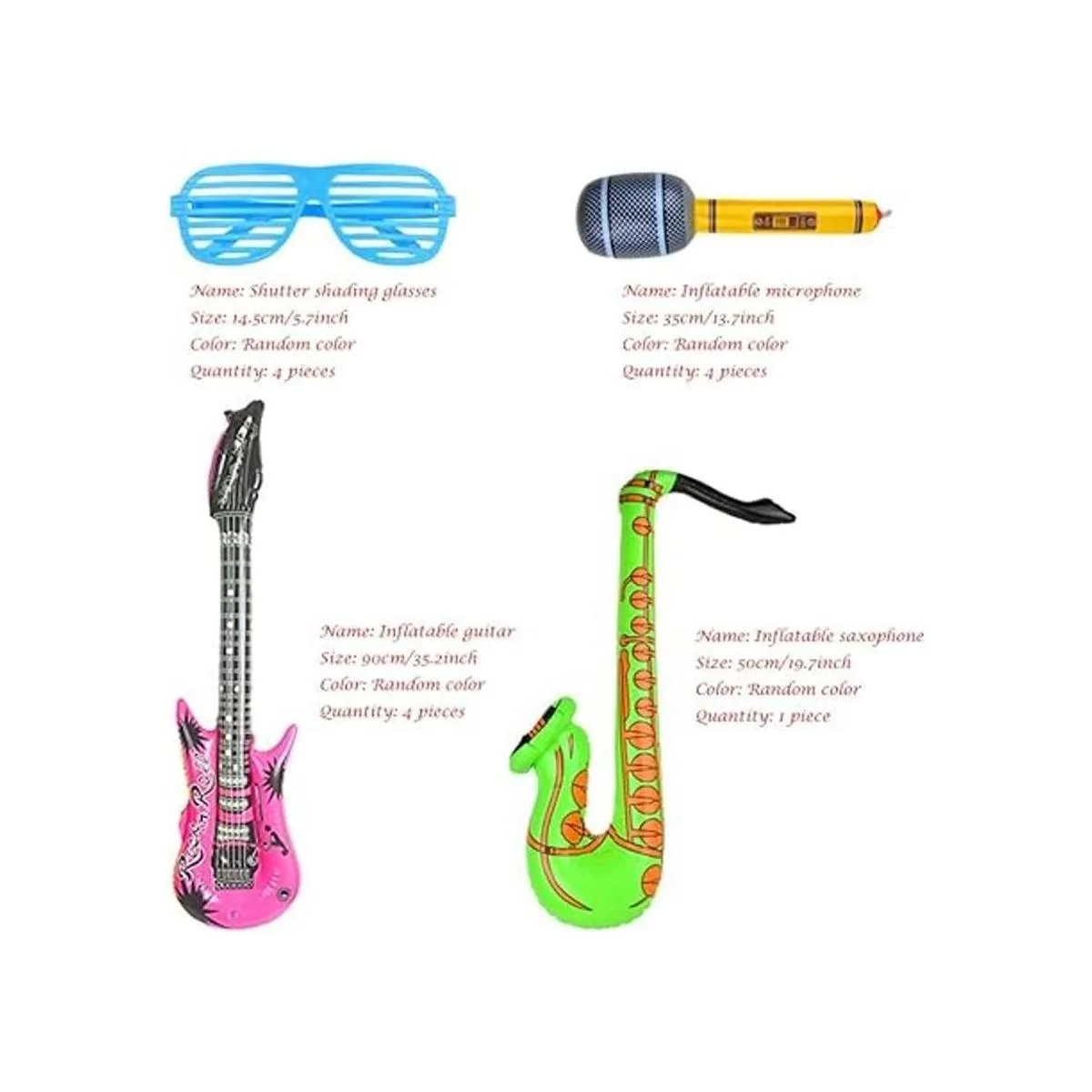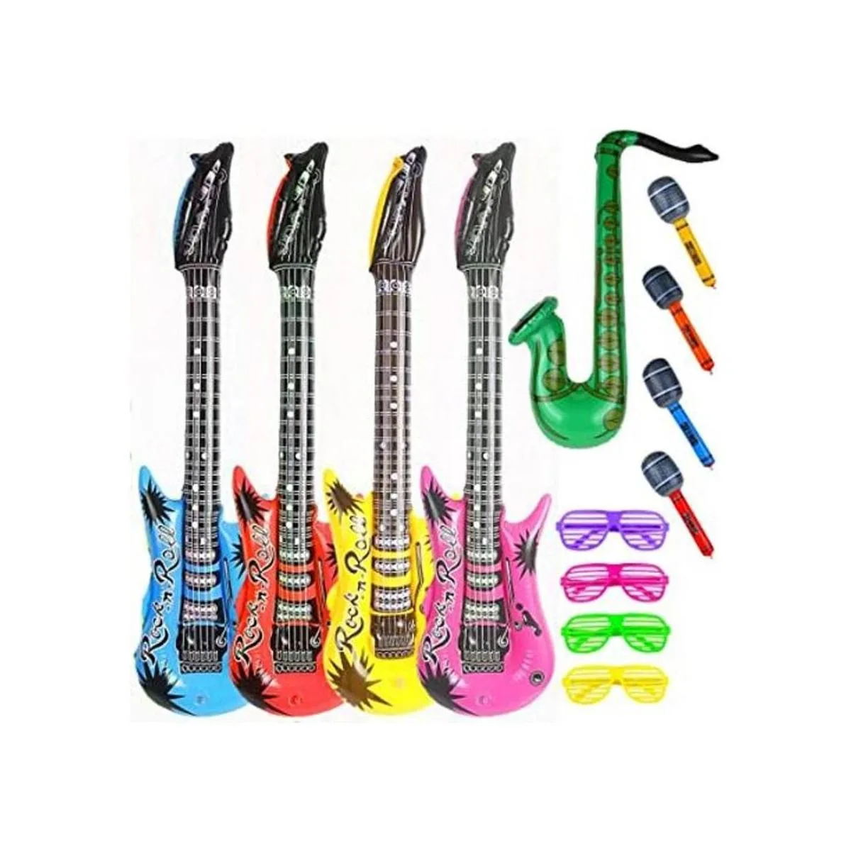 Mejor combinación incluye 4 guitarra hinchable, 4 micrófonos hinchable 4 Gafas sombreado y 1 hinchable saxofón.