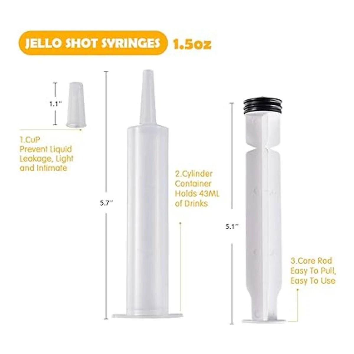 Mayor capacidad y mejora: haz que tu fiesta viva con este gran paquete de 60 jeringas de tiro jumbo para fiesta, que cuenta con una capacidad gigante de 2.onzas. También cada jeringa tendrá un tapón de goma negro para eliminar la posibilidad de que las jeringas se filtren y ensucien Hacemos que la preparación de fiestas sea muy fácil para ti.
