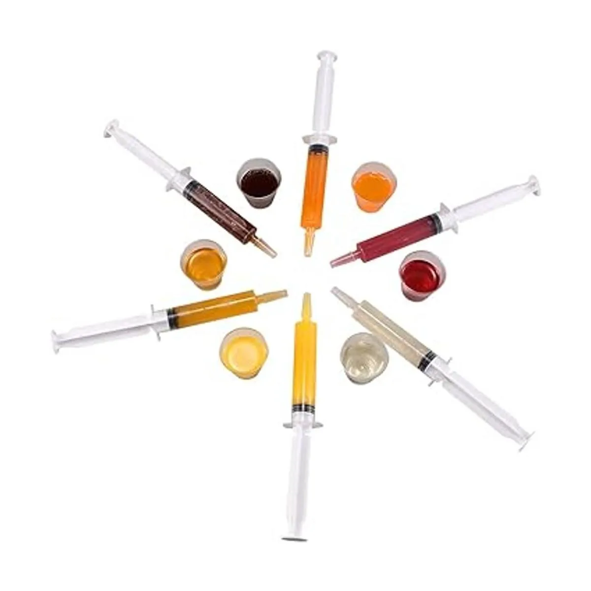 Seguro e higiénico: jeringas de gelatina hechas con plástico seguro de alta calidad, aprobadas para uso alimentario. Contiene sustancias nocivas, por lo que se pueden inyectar de forma segura en bebidas. En comparación con las tazas abiertas ordinarias, las jeringas están cerradas y libres de polvo, por lo que son seguras e higiénicas y seguras de usar paquete de 60