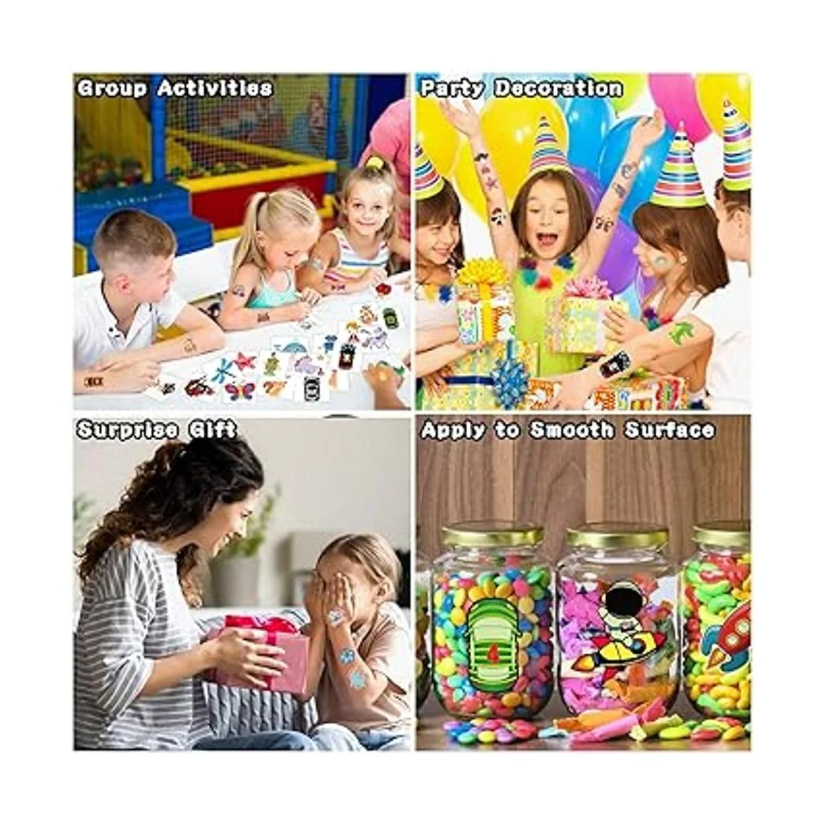 Calidad y cantidad: el paquete contiene 204 hojas diferentes de tatuajes temporales. Tamaño perfecto para ponerlos en bolsas de regalo como un regalo para niños Nuestros tatuajes de temperatura se someten a rigurosas pruebas de fiesta, garantizamos que los tatuajes falsos durarán todo el día o más.