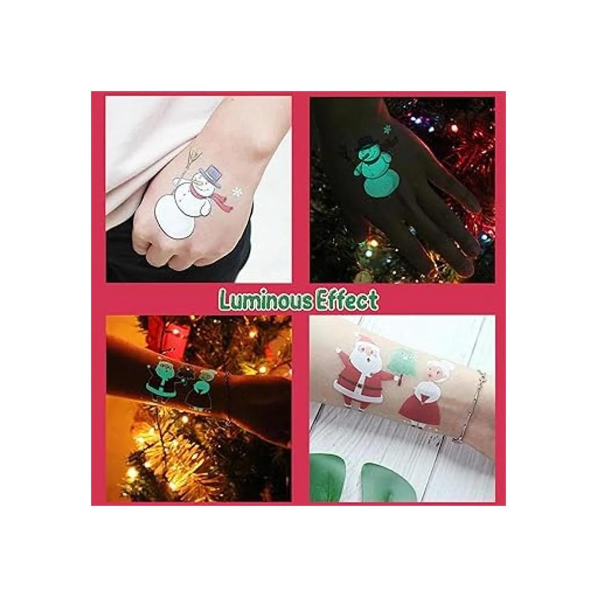 Partywind Tatuajes temporales de Navidad luminosos para decoración de fiestas, adornos de Navidad para niños, suministros de fiesta, pegatinas de Navidad para niños y niñas 4 hojas