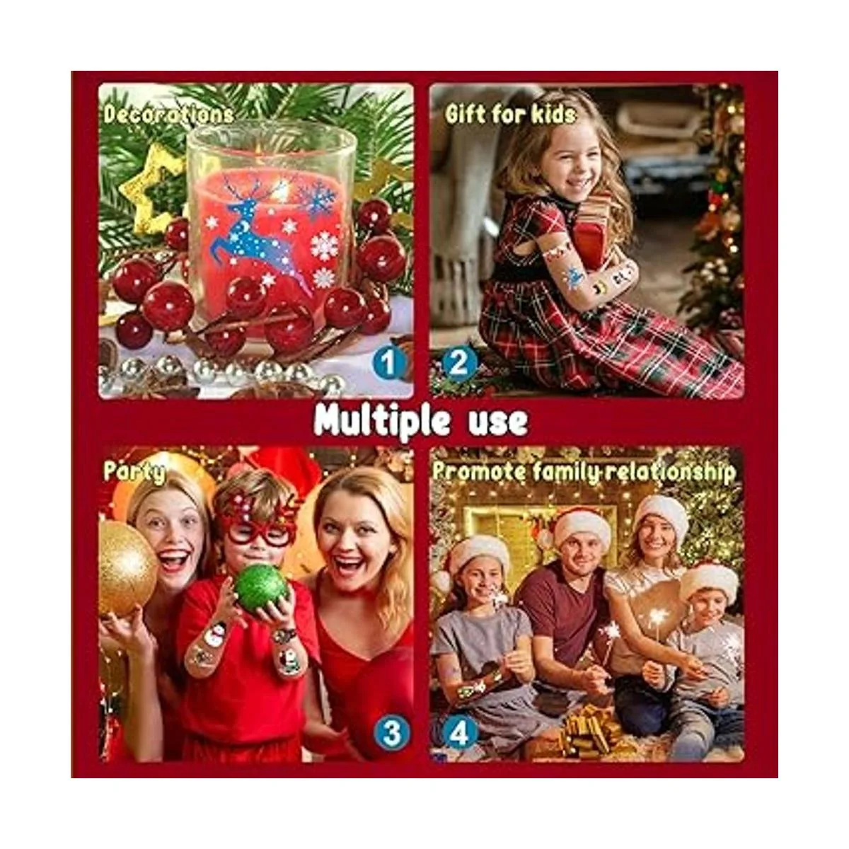 Lugar aplicable: estos tatuajes falsos son perfectos para regalos de fiesta de Navidad, suministros de fiesta, decoraciones de fiesta, rellenos de calcetines, etc. Estás buscando los accesorios perfectos para fiestas Nuestros tatuajes temporales brillantes son tu buena elección, lo que añadirá diversión a las fiestas