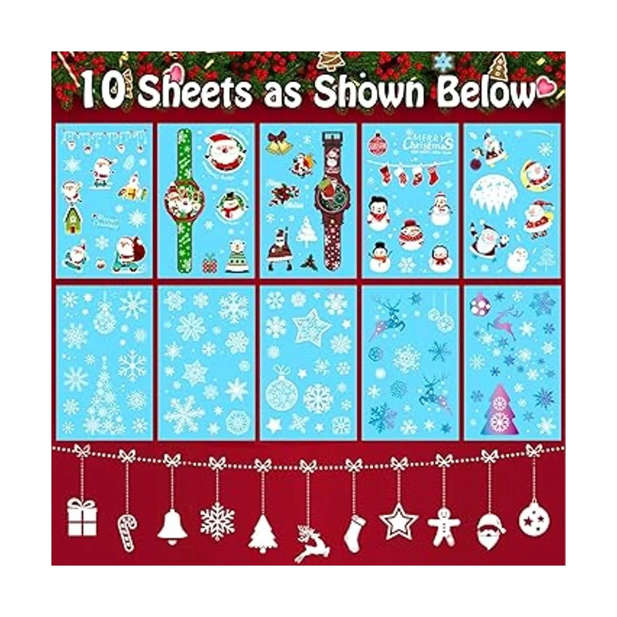 Partywind Tatuajes temporales luminosos de Navidad, 150 estilos brillantes de Navidad, tatuajes falsos con copo de nieve, Papá Noel para niños, suministros de fiesta de Navidad, regalos 10 hojas
