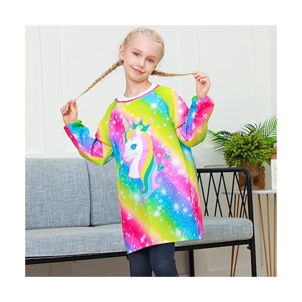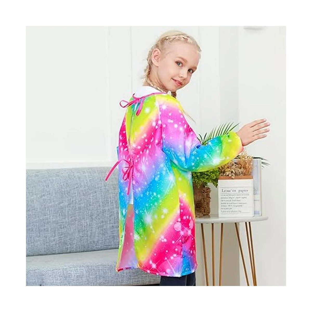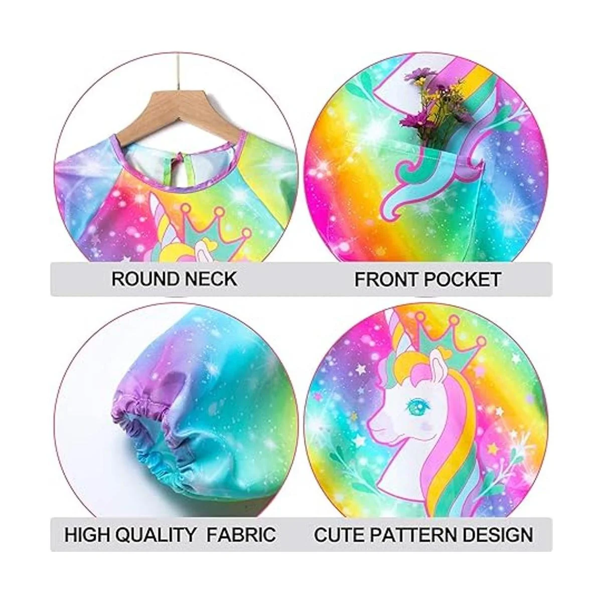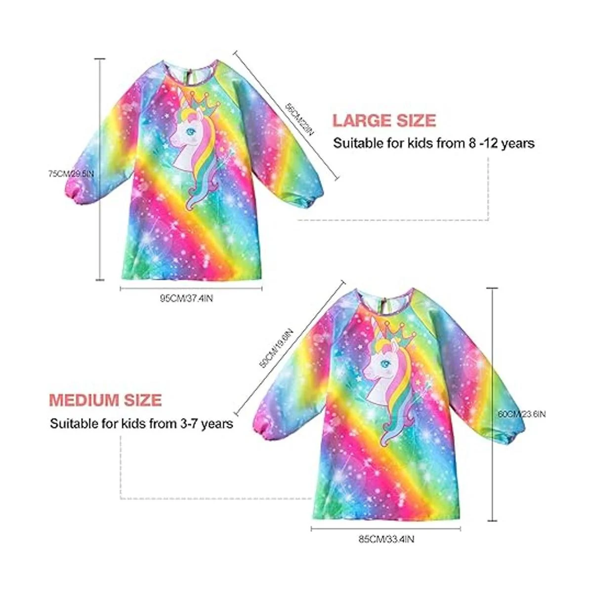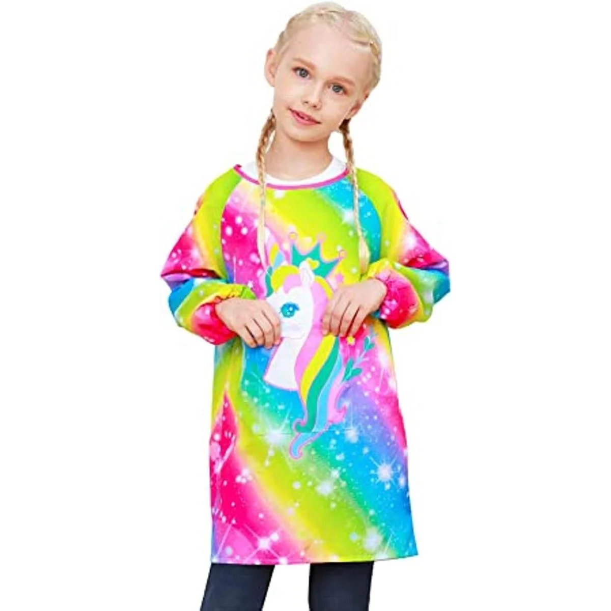 2. Diseño de baba: patrón de unicornio arcoíris con impresión HD, diseño popular con mangas largas para una mejor protección y el diseño de cierre ajustable para un uso cómodo. Además, los bolsillos delanteros ayudan a los niños a sostener bolígrafos, pintura, aperitivos y toallas de papel y otros artículos. Longitud hasta la rodilla para una mejor protección de todo el cuerpo.