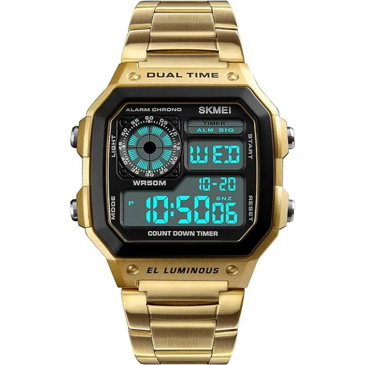 PASOY Reloj digital multifunción para hombre con alarma de hora doble, cronómetro, con retroiluminación y retroiluminación impermeable