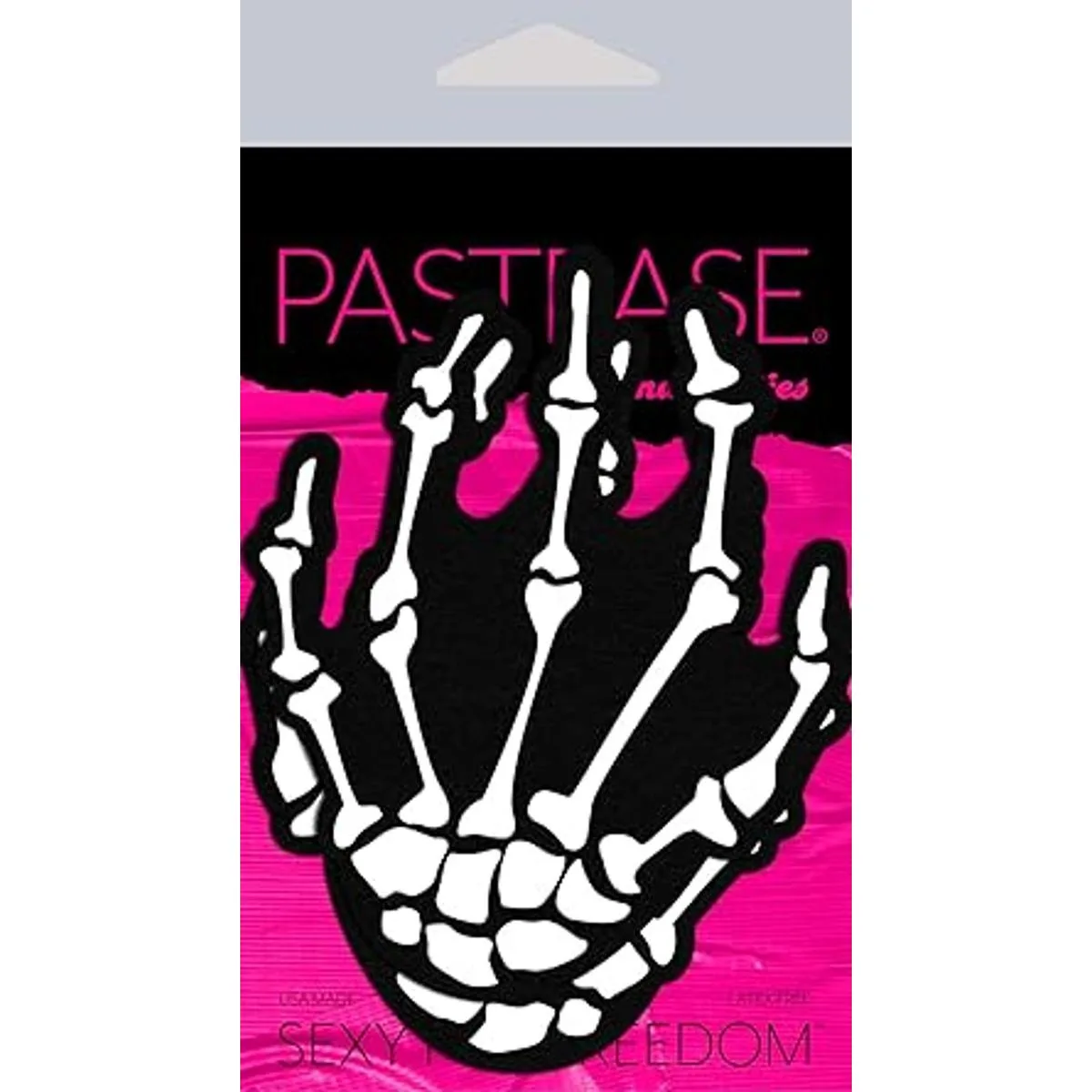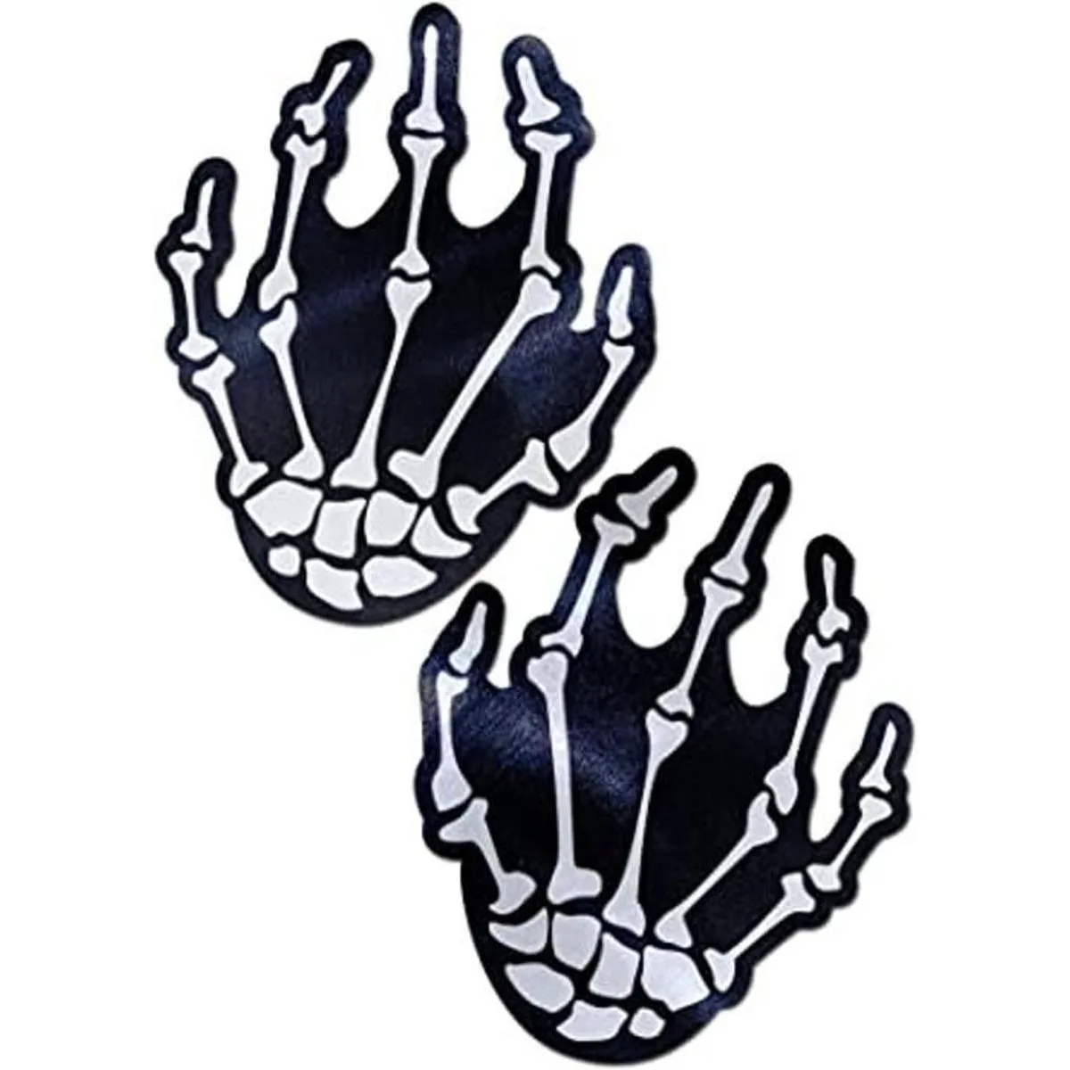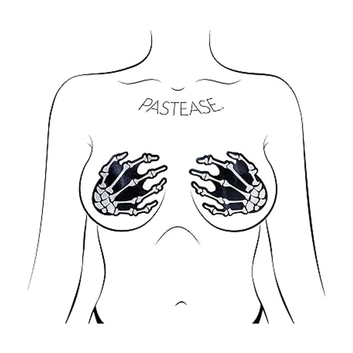 Pastease Pezple Cover Pasties Manos de esqueleto Manos de hueso blanco en negro Festival Rave EDM Party Club DJ Techno Accesorio de traje