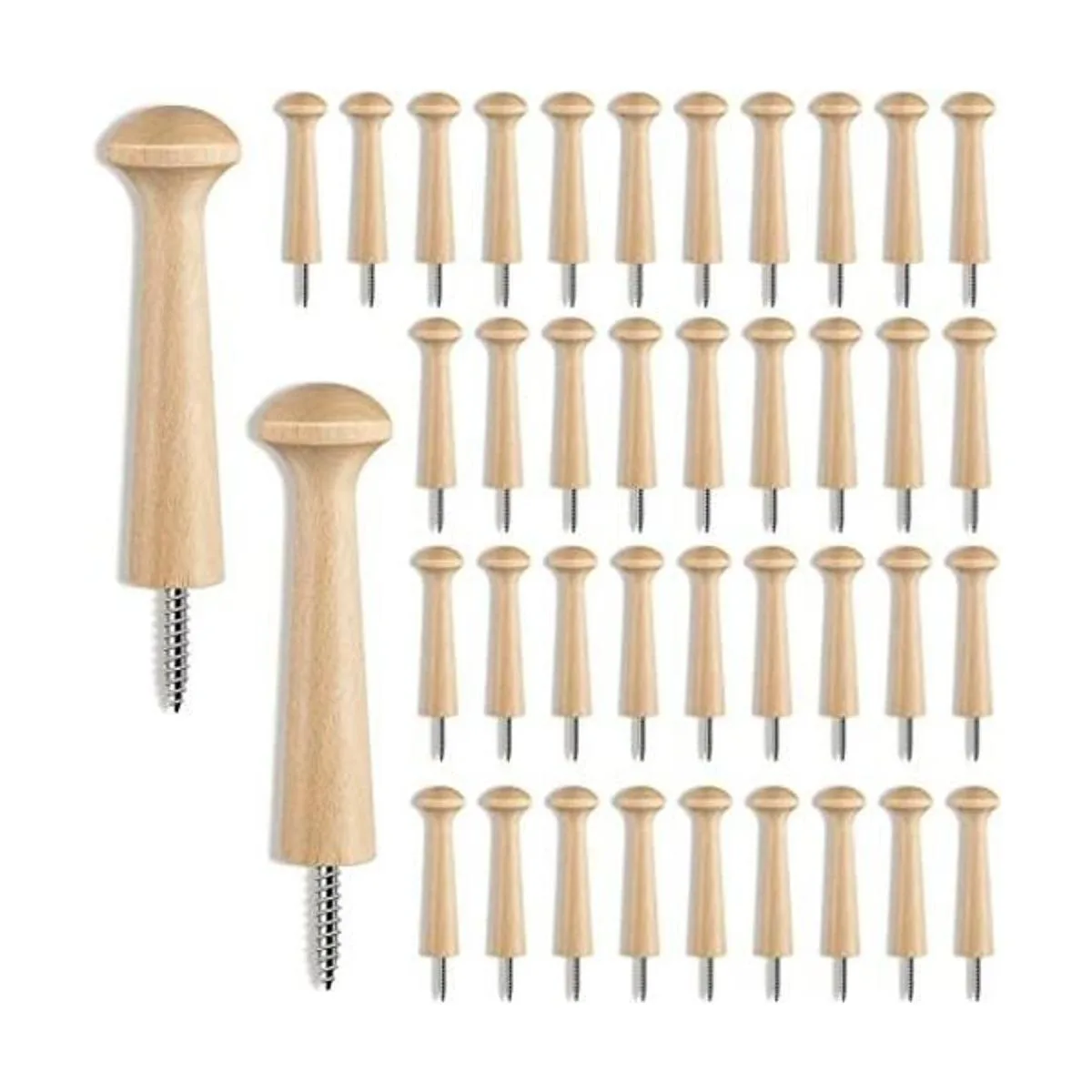 Pastillas de madera roscadas de madera de 2.9 pulgadas de largo sin terminar para colgar ropa, sombreros, toallas y más colores de pintura de bricolaje 40 piezas