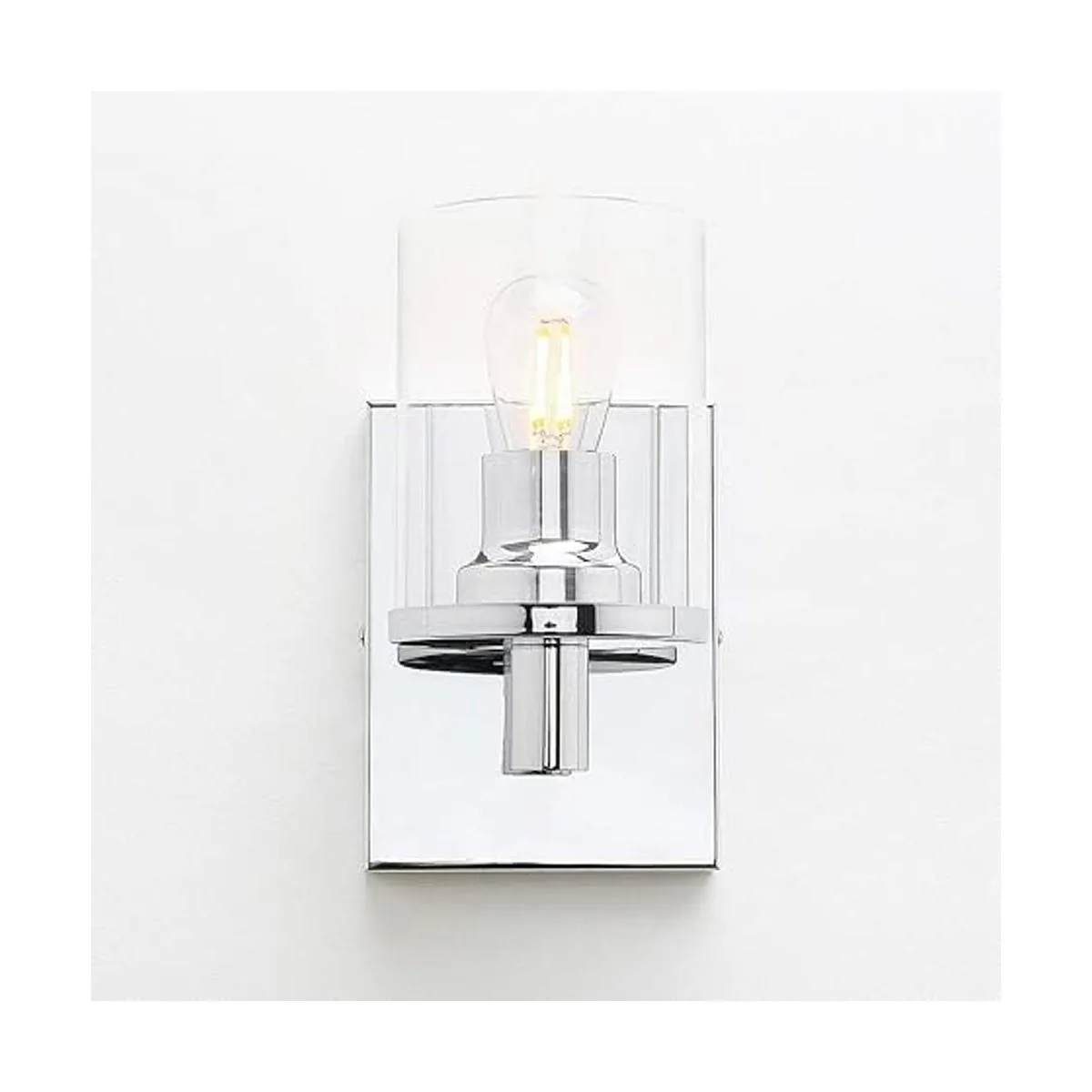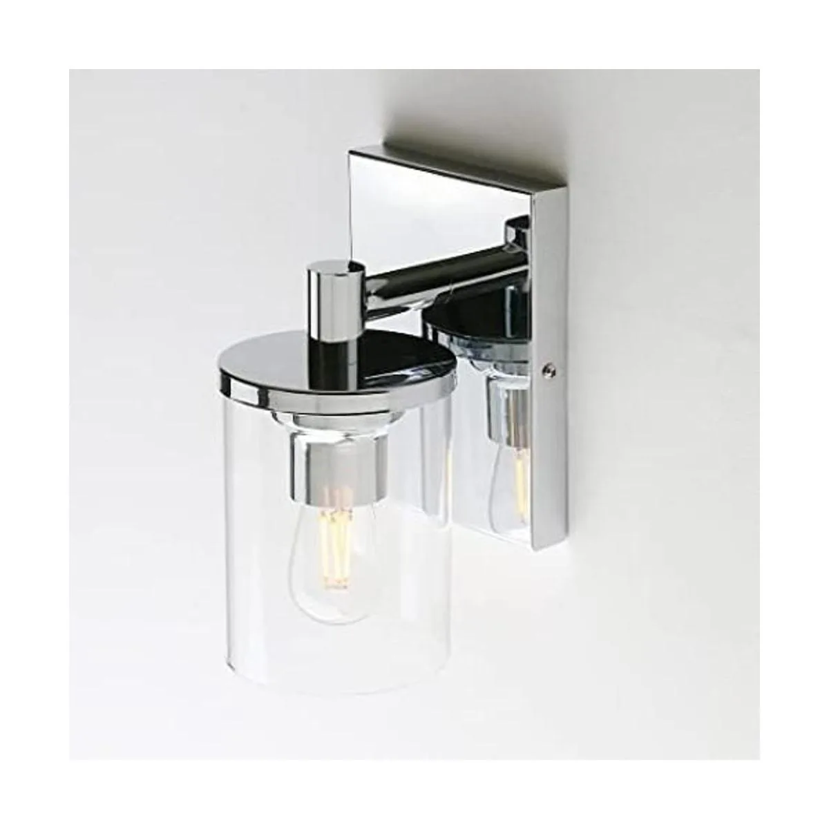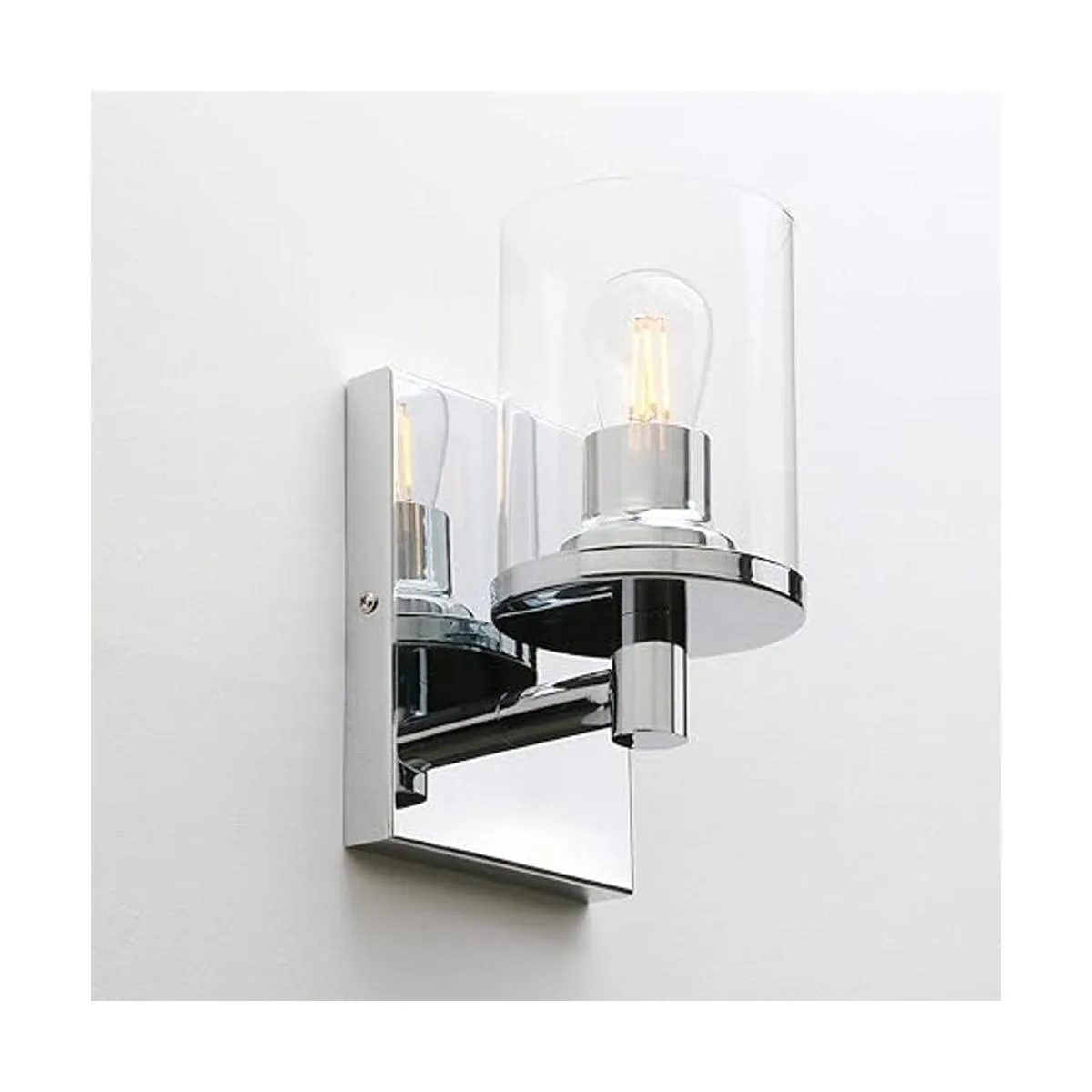 Pathson Aplique de pared vintage de 1 luz, luz de pared de baño con pantalla de vidrio transparente y base de metal, accesorios de iluminación industriales para dormitorio, tocador, pasillo, cocina cromo