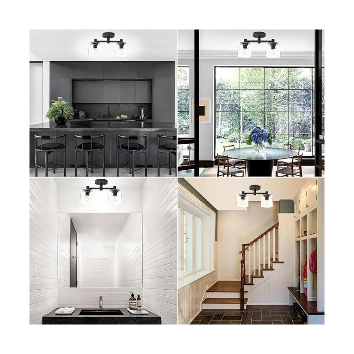Pathson Lámpara de techo semiempotrada de 2 luces, accesorio de iluminación colgante industrial con pantalla de cristal, lámpara de araña de techo para pasillo, loft y barra de cocina