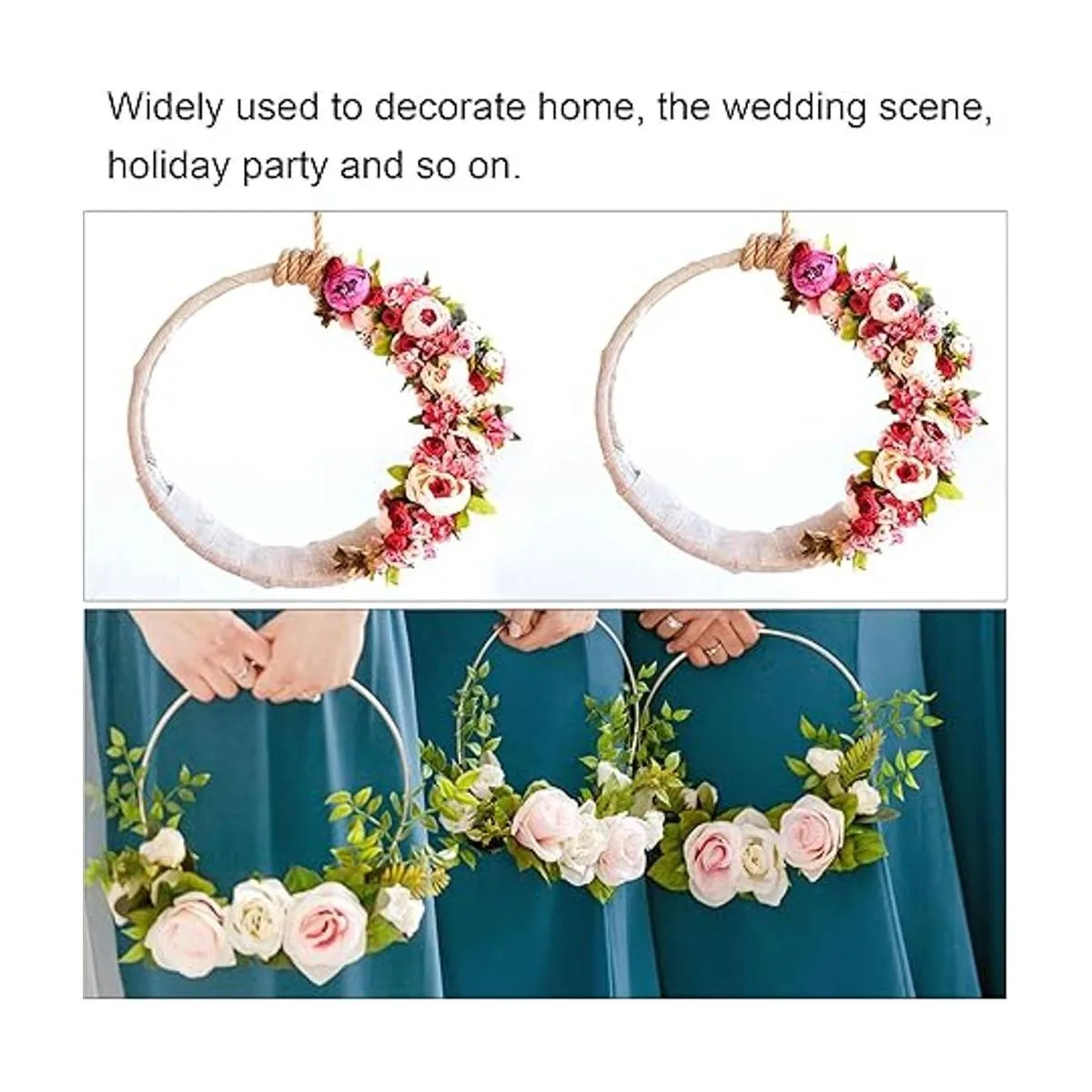 Instrucciones: envuelve alambre, flores, hojas, telas, cintas y otros materiales alrededor del anillo de bambú para hacer una corona de boda, atrapasueños, carillón de viento, artesanía, etc.