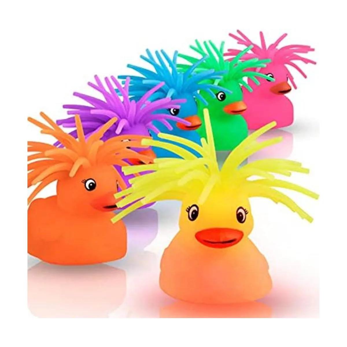 Incluye: 6 patos en varios colores, azul, verde, naranja, rosa, morado y amarillo