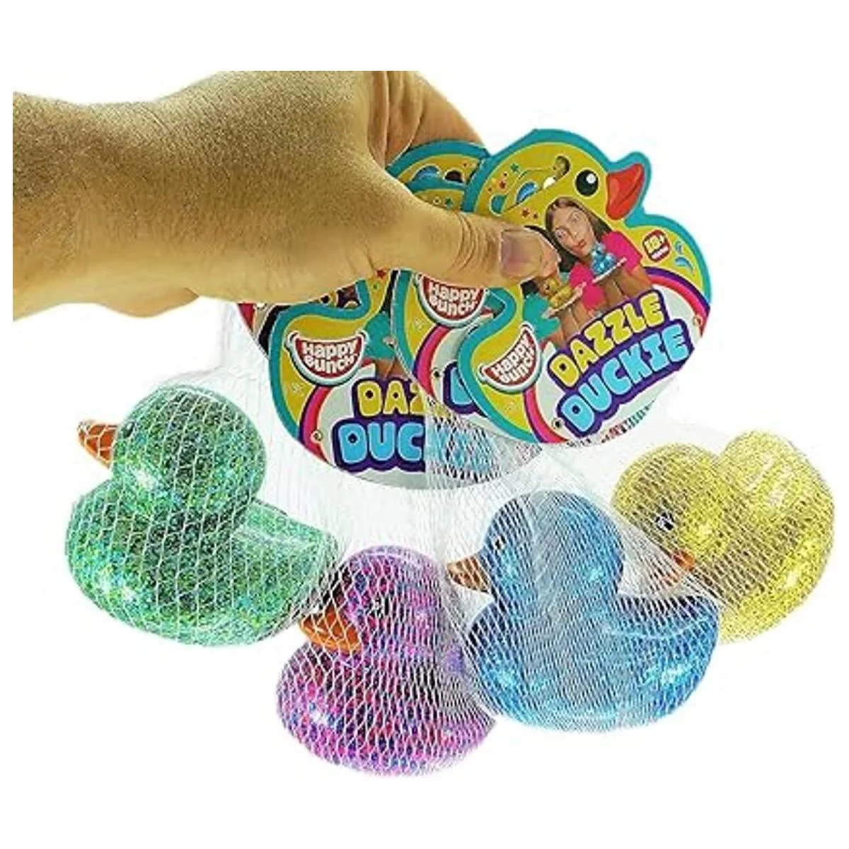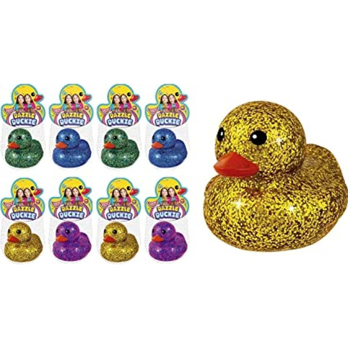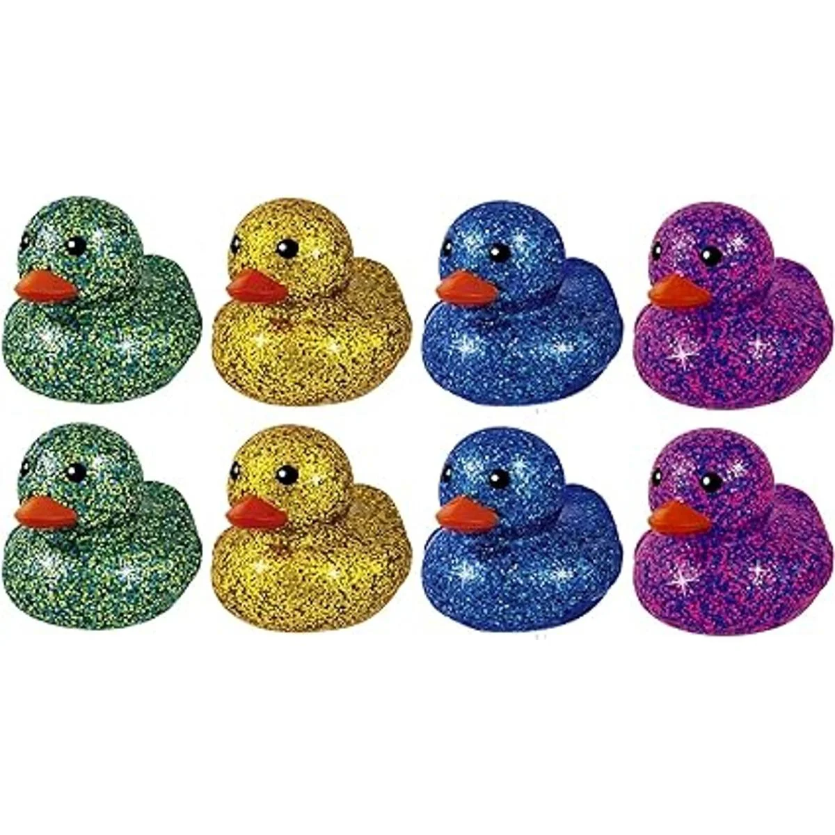 Patos de goma con purpurina de colores metálicos de 3 pulgadas 8 unidades surtidas juguete de goma para niños, juego sensorial, alivio del estrés, relleno de calcetines, suministros de relleno de piñata a granel.