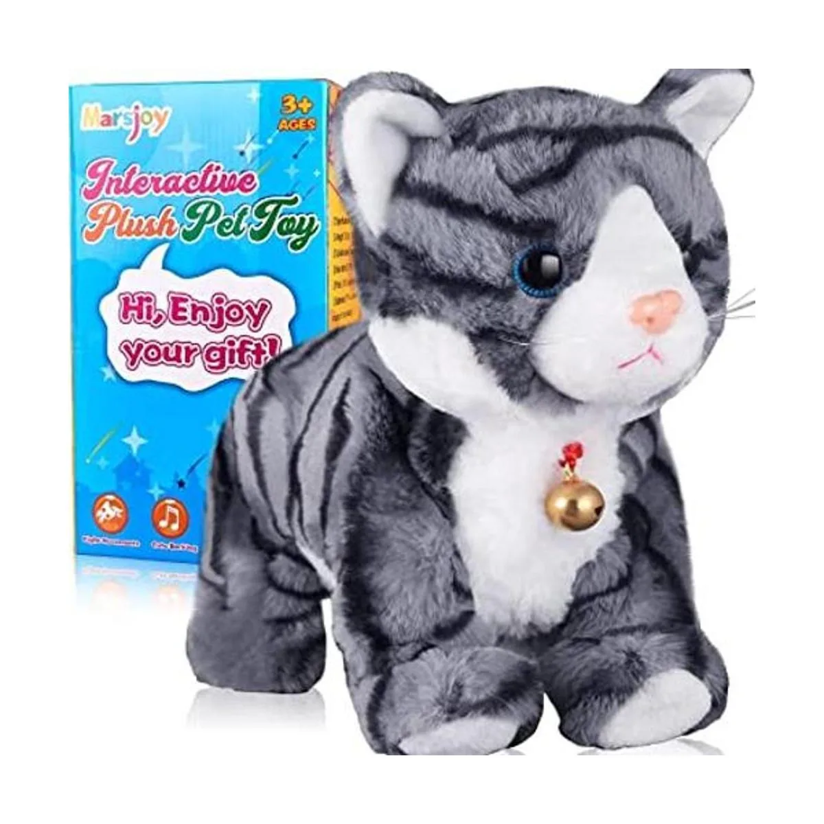 Patrón de gato robot gris de peluche con gato interactivo de gato, control táctil de gatito maullido, mascota electrónica, gato robótico, gato gatito, gato de juguete animado para niñas, bebés y niños, L 12 pulgadas