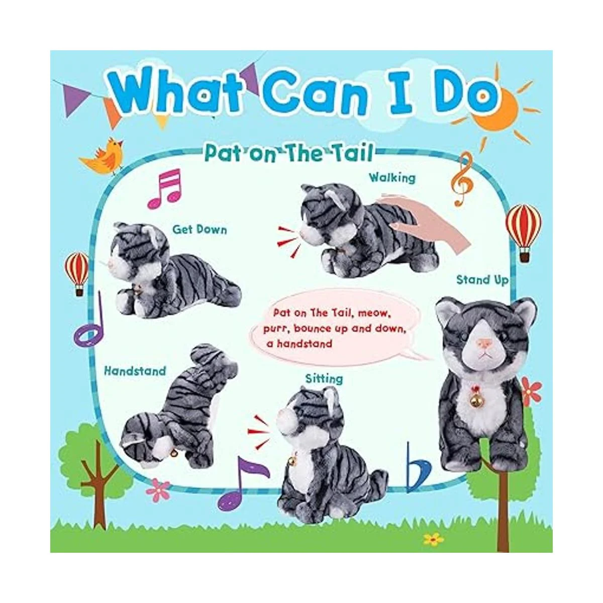 Dale palmaditas en la espalda o la cola del gato: gato interactivo realista, puedes darle una palmadita en la cola o aplaudir justo cerca de ella y hace muchos trucos, como maullido, ronronronronronronronronronronroneo, rebote hacia arriba y hacia abajo, un soporte de mano, salto y más; es como un gato real, puede hacer muchas acciones. Los ruidos y movimientos son divertidos.